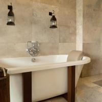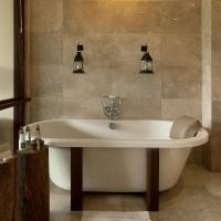 В просторных ванных комнатах установлена ванна и отдельная стеклянная душевая кабина.