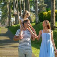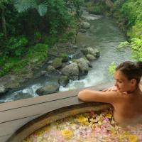 Guests can explore Peliatan rice terraces, indulge in relaxing spa treatments by the river, or enjoy quiet time by the infinity pool.