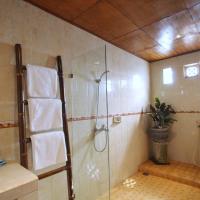 В числе удобств номеров вентилятор, шкаф, стол, собственная ванная комната с душем, а также плиточный пол.