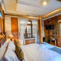 В номерах установлены деревянные кровати с балдахином и деревянная мебель ручной работы.