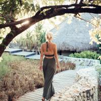 Курортный отель построен преимущественно из восстановленной древесины и бамбука и является зарегистрированным кандидатом на членство в Лесном попечительском совете.