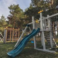 Дом для отпуска Ramios bitės с бесплатным Wi-Fi, детской игровой площадкой и принадлежностями для барбекю расположен в городе Паланга Клайпедского уезда, менее чем в 1 км от пляжа Ванагупе.