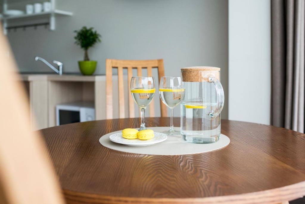 Во всех оформленных в теплых тонах номерах-студио в распоряжении гостей ЖК-телевизор и мини-кухня с микроволновой печью и холодильником.