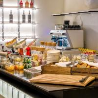 Также гости могут поужинать в ресторане в лобби с выбором блюд по меню и посетить бар с видом на улицу Пилес.