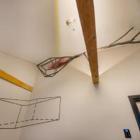 Стойка регистрации, ресторан и бар отеля декорированы картинами, художественными панно, инсталляциями и скульптурами.