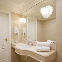 В каждом номере обустроена собственная ванная комната с феном и полом с подогревом.