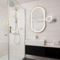 Во всех номерах обустроена современная ванная комната с косметическим зеркалом и бесплатными туалетными принадлежностями.