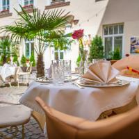 Летом столики для посетителей ресторана сервируют на открытом воздухе во внутреннем дворе.