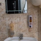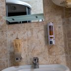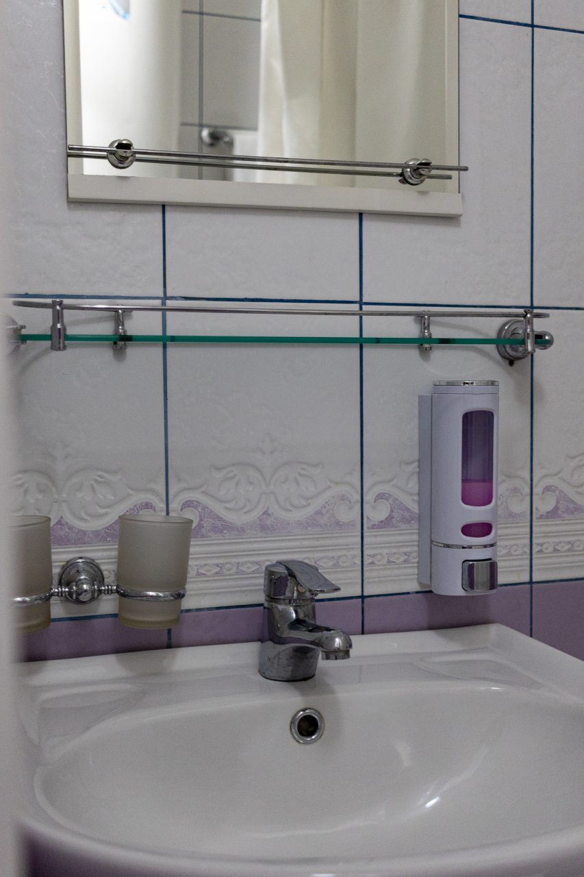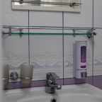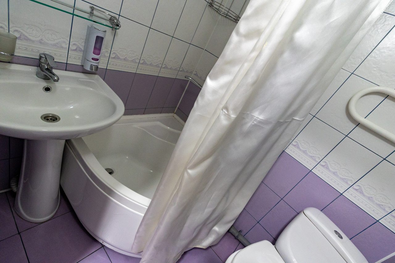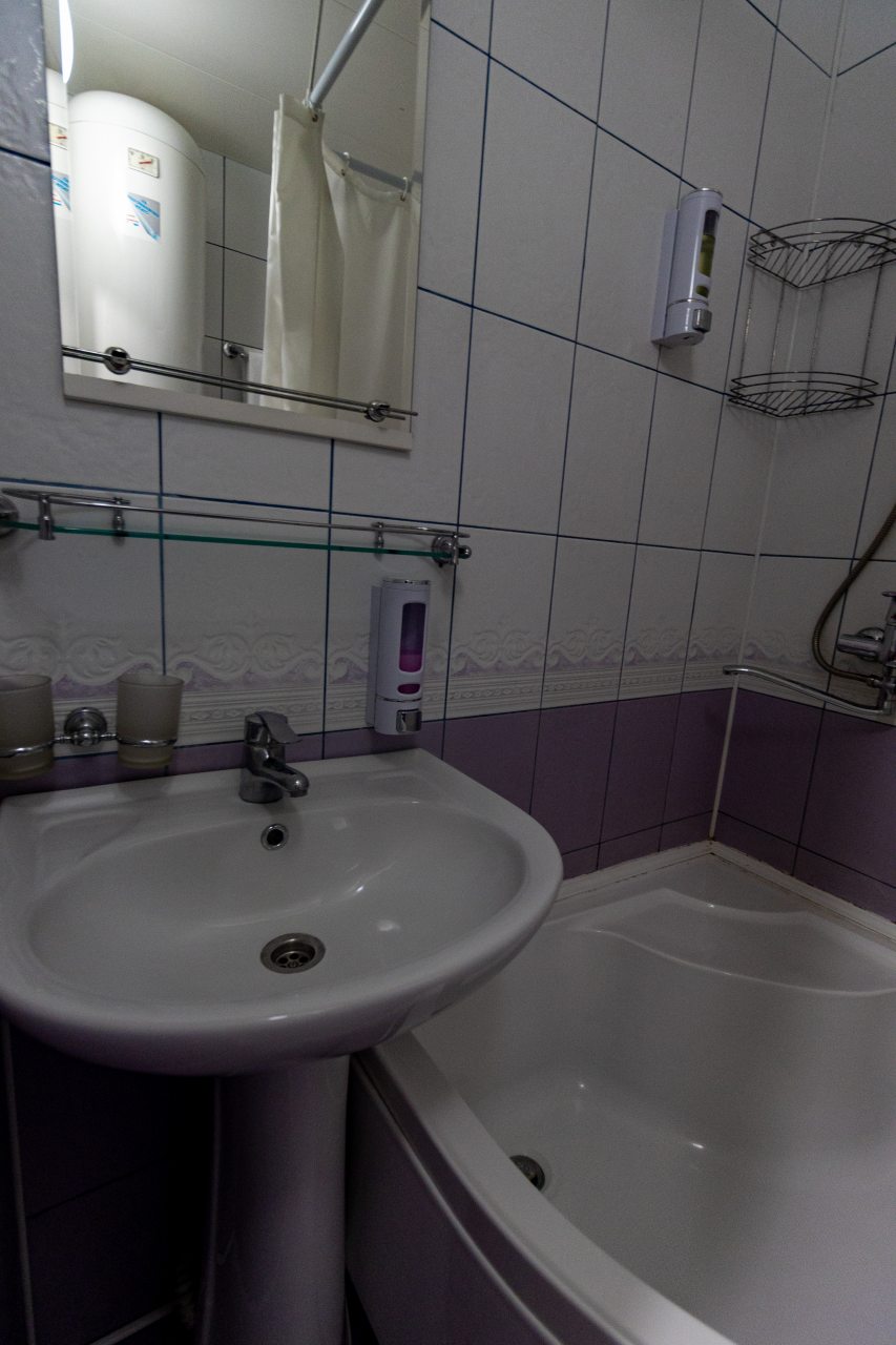 Из недостатков: цена не соответствует качеству, слишком завышена. Во время проживания , в ванной упала старая советская шторка, которая держалась на честном слове. Упала на стеклянную полку, которая в свою очередь была закреплена на зеркале. У зеркала отломился уголок. При выезде, я как нормальный человек , подошёл к администратору и объяснил ситуацию. В итоге , меня решили оштрафовать на 6 000 рублей.