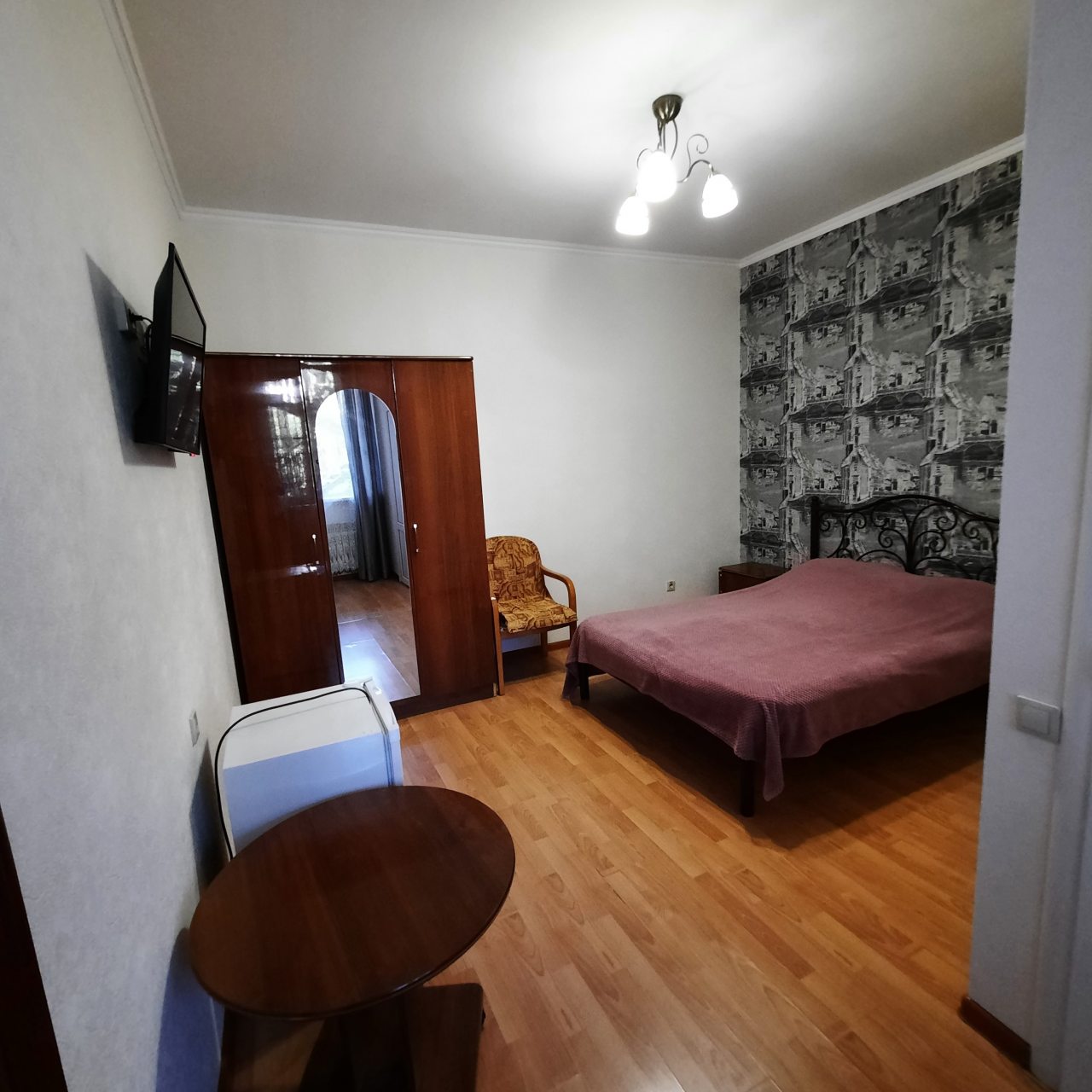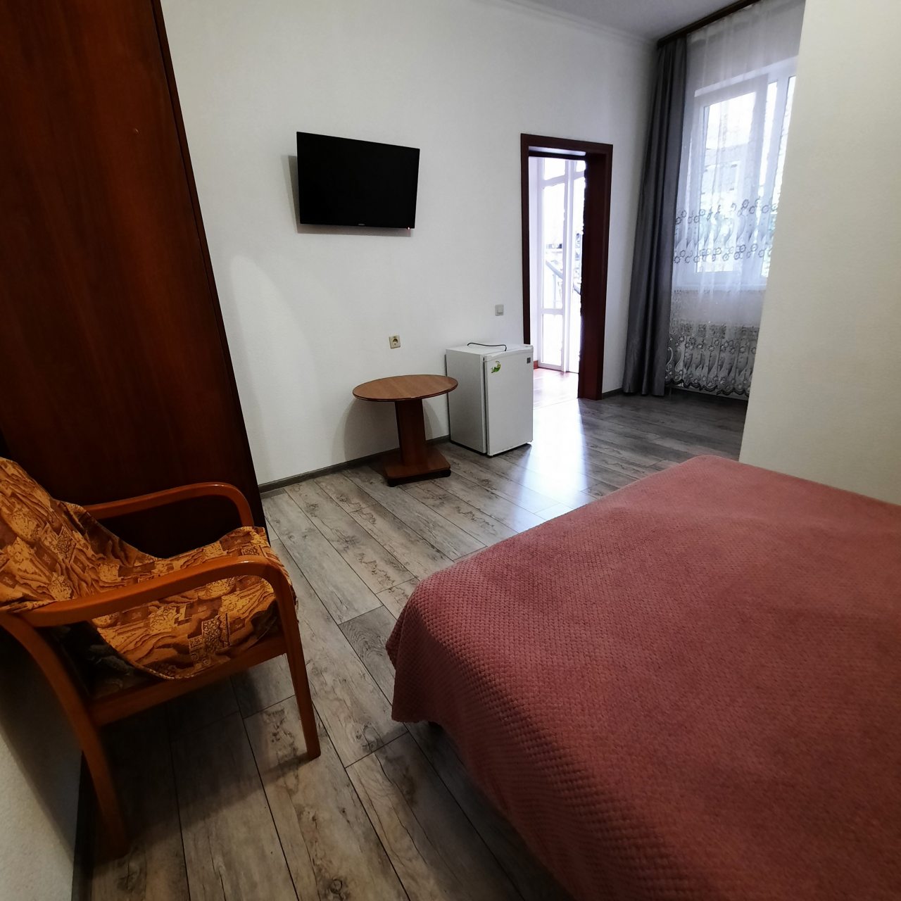 Очень понравилась хозяйка - приветливая, добрая и чистоплотная. В номере уборка проводилась часто, неоднократно менялось постельное белье. Санузел и душ убирались каждодневно. На кухне чистота и порядок. В нашем распоряжении были все предметы быта и продукты - сахар, чай, масло. Чувствовали ссебя как дома. Шума от самолетов при закрытых окнах не слышно. Понравилось расположение - до моря 5 минут, чуть дольше - центральный рынок, улица Ленина. Совсем рядом - Пятерочка и Магнит. В этот гостевой дом захочется еще вернуться
