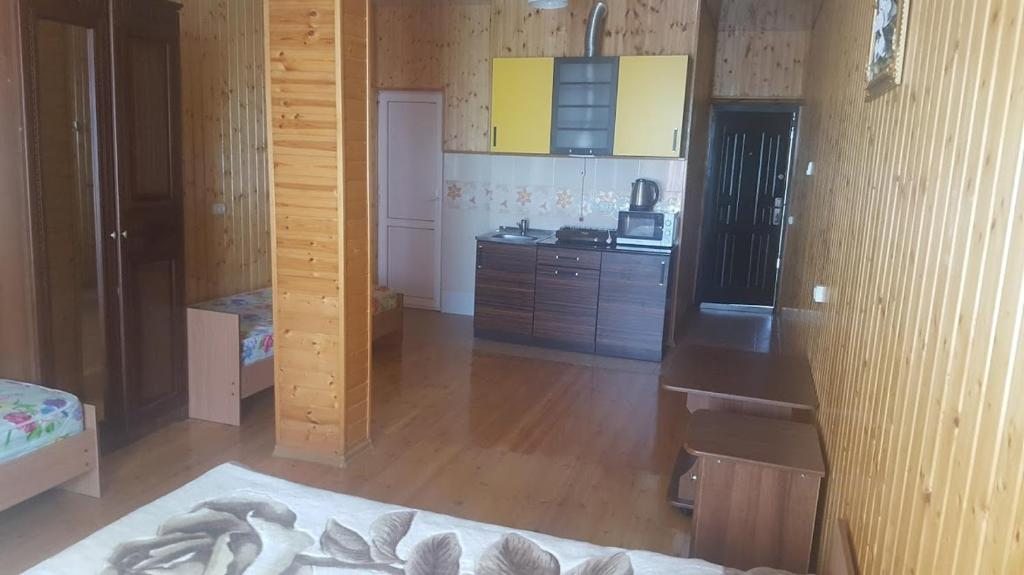Жили на втором этаже в этом доме, у нас был балкон с видом на поселок, красивое место, уютный номер. До города близко, примерно 20 минут на автобусе, до моря доходили за 10 минут. Персонал был внимательный и щедрый на различные услуги, пользовались хозяйской кухней.