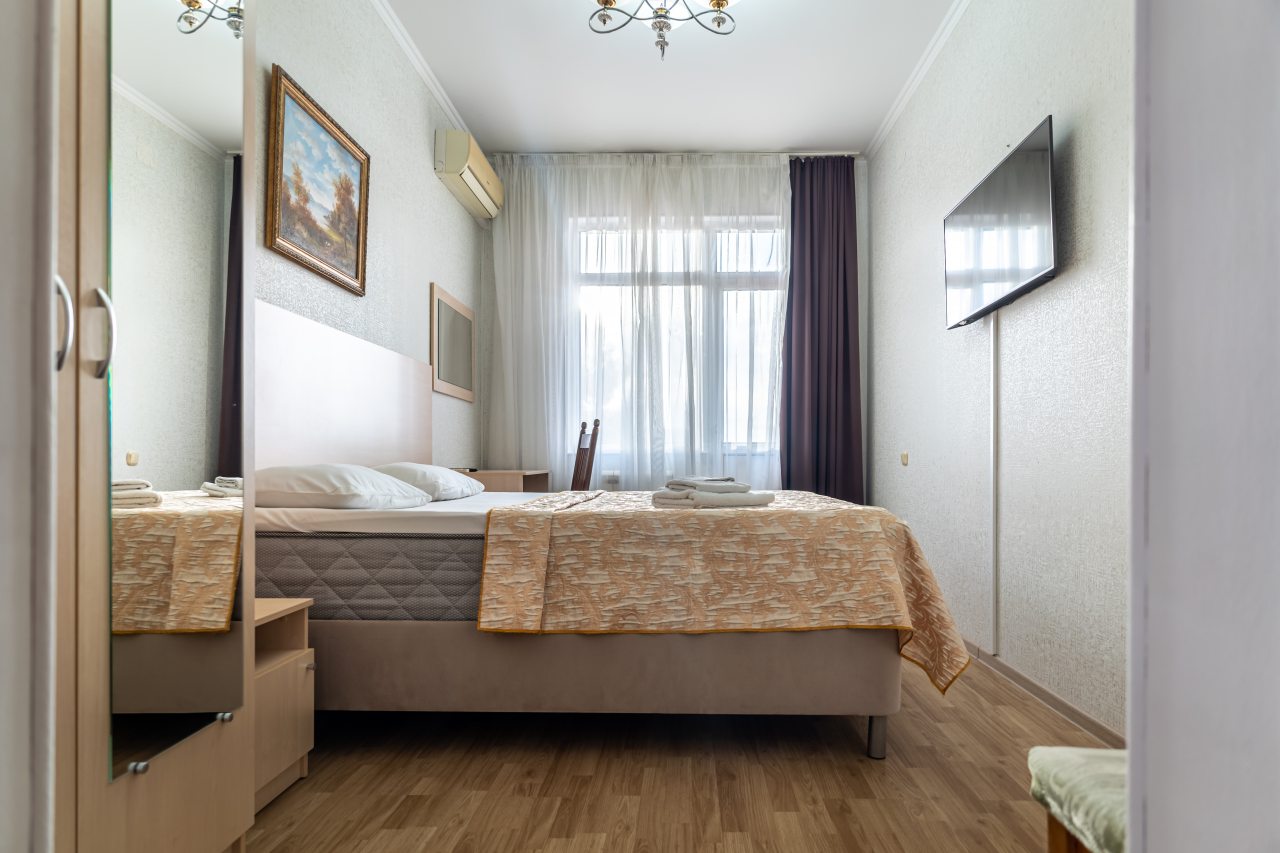 Прекрасный администратор Андрей, очень радушно встречает гостей и быстро помогает решить любые вопросы. В номере есть все необходимое: фен, полотенца, свежее постельное белье, а также удобный матрас и подушки. Предоставляются индивидуальные шампуни и гели для душа. На каждом этаже имеется чайник и утюг для общего пользования. На первом этаже расположена чистая и ухоженная кухня со всей необходимой посудой. Отель находится в тихом переулке, в шаговой доступности магазины, кафе и места, где можно попробовать шашлык. До пляжа совсем близко – всего один квартал. Рекомендуем!