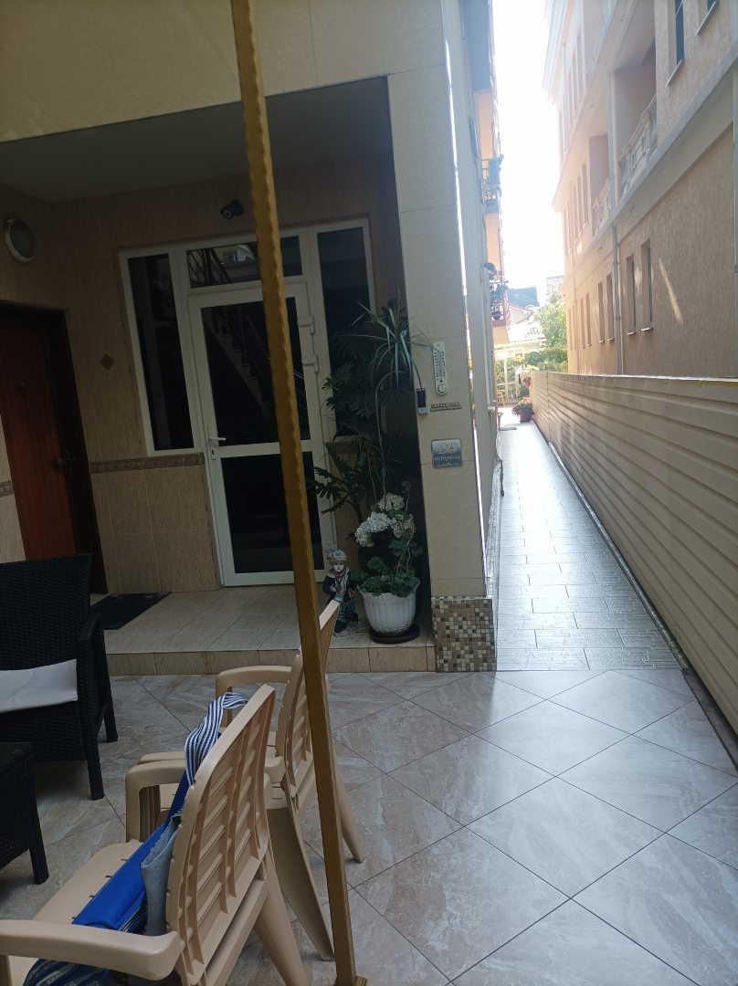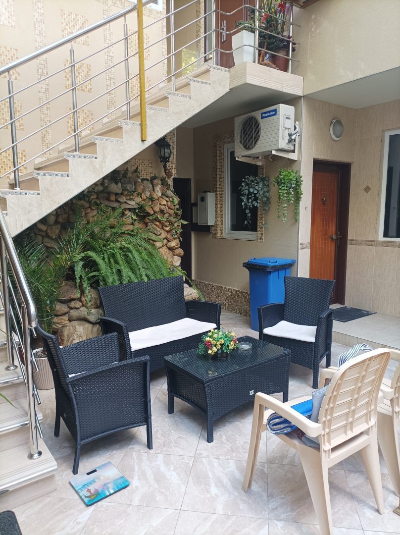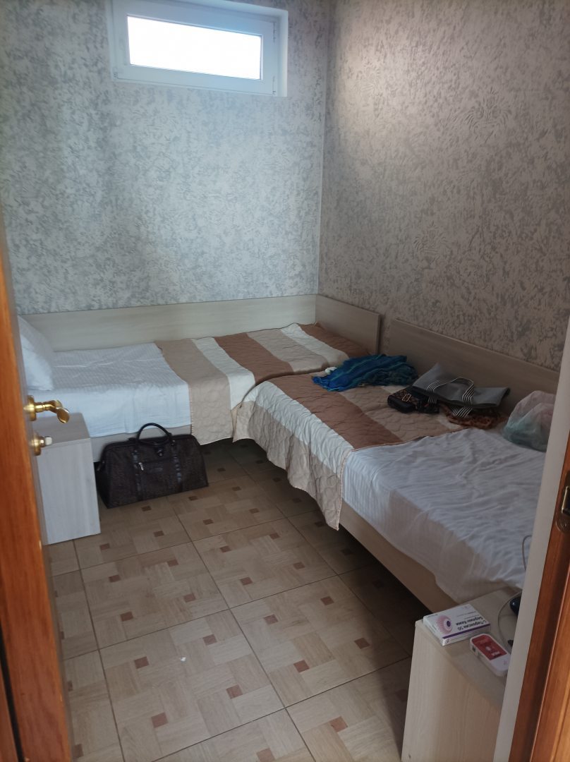 Наш номер распологался на 1-м этаже, в номере 2 комнаты : большая в которой двухспальный диван, шкаф,стол, холодильник,чайник ,тв.,интернет, и маленькая комната с двумя отдельными кроватями ,с тумбочками. Кондиционер на две комнаты.Санузел всё стандартно, был большой комплект полотенец, имеется фен, шампунь индивидуальный. Кухня есть,где можно приготовить и поесть за столиком.Белье меняли 1 раз3 дня,уборка в номере так же,если надо по запросу то убирают.На улице был стол со стульями, посидеть на воздухе. Имеются веревки для сушки белья .Вода всегда есть. Вежливый администратор, можно было обратиться по любому вопросу.Везде чисто и уютно.До моря идти минут 10, по дороге магазинчики, точки питания на каждом шагу.К пляжу цены дороже,чем дальше от моря тем цены выгоднее.Рядом центр.улица по кот.ходят автобусы,если куда доехать.