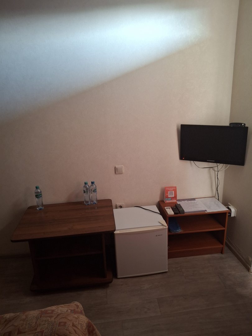 Из недостатков: номер очень маленький. В ванной комнате нет розеток, т.е. уложить волосы не получится, а зеркало только там. Также не хватает вытяжки (вентилятора), душно.