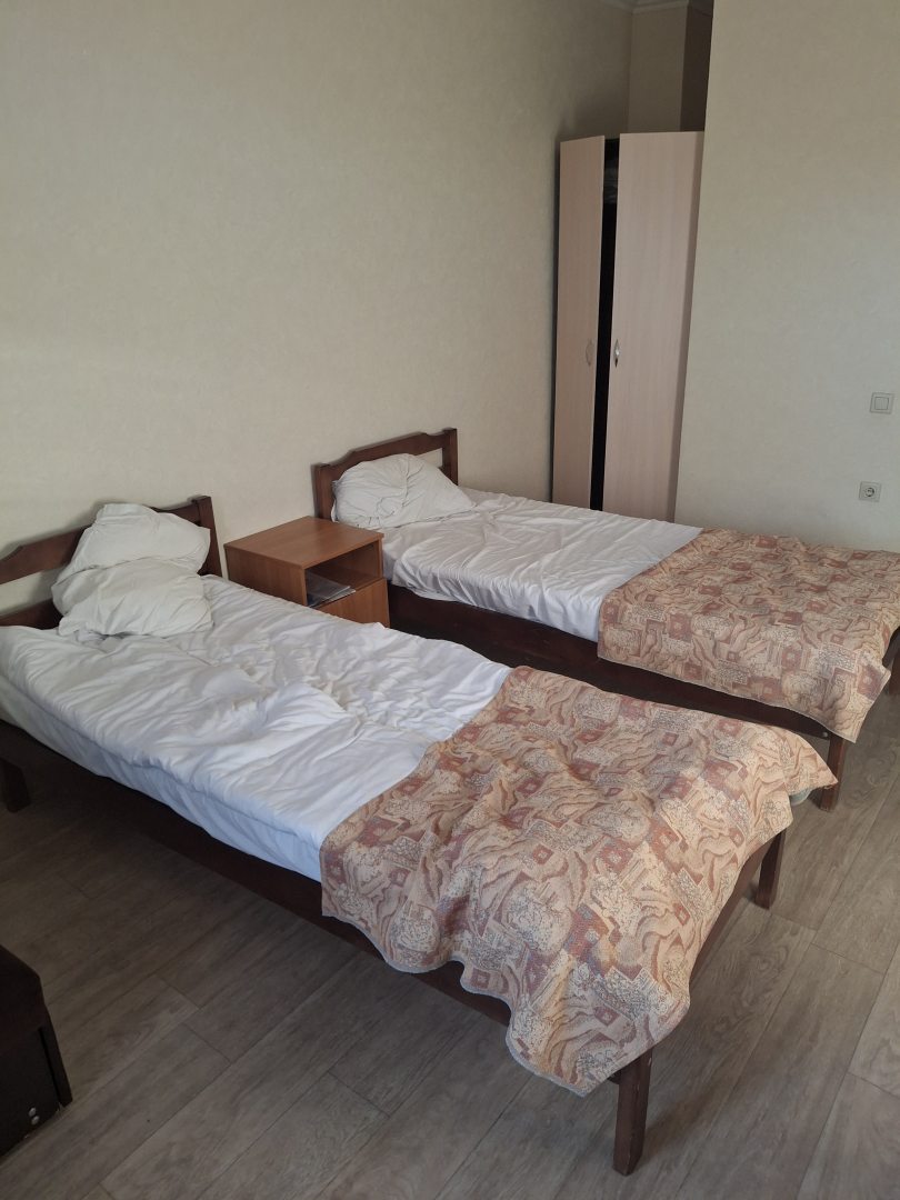 Гостевой дом находится недалеко от пляжа, идти примерно 15 минут. В номерах неплохая обстановка, все выполнено в светлых тонах. Шторы плотные, затемненные. Есть отдельный санузел с душем и туалетом. Напор воды хороший. Телевизор имеется, постельное предоставляют, как и полотенца. Гладильные принадлежности находятся на этаже, они общие, но мы смогли воспользоваться ими без затруднений. Для организации питания предусмотрена общая кухня.