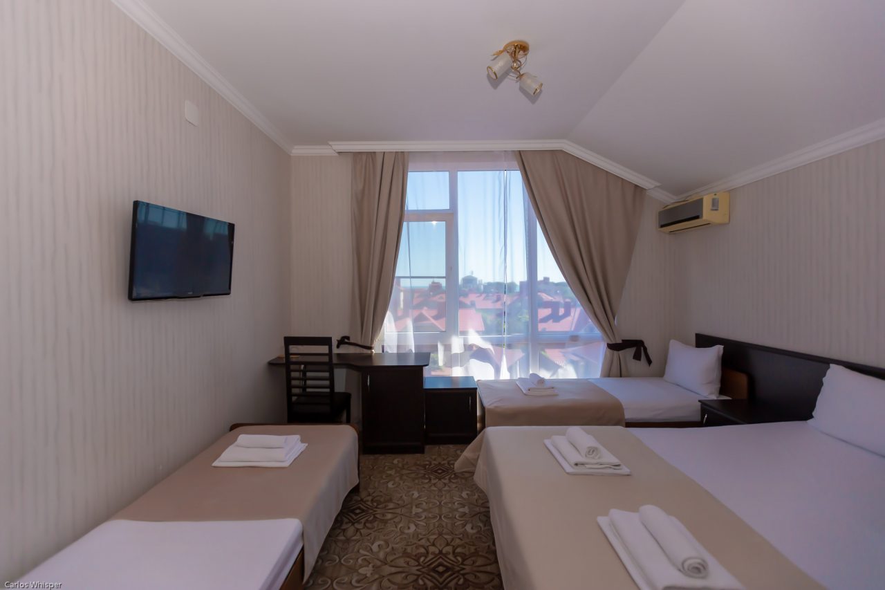 Отличный четырехместный номер, просторный, разместились с детьми без проблем, очень уютно. Расположение отличное, рядом рынок, магазины, поесть можно в кафе, в доме оборудована общая кухня. Неплохие экскурсионные предложения. Отдых удался.