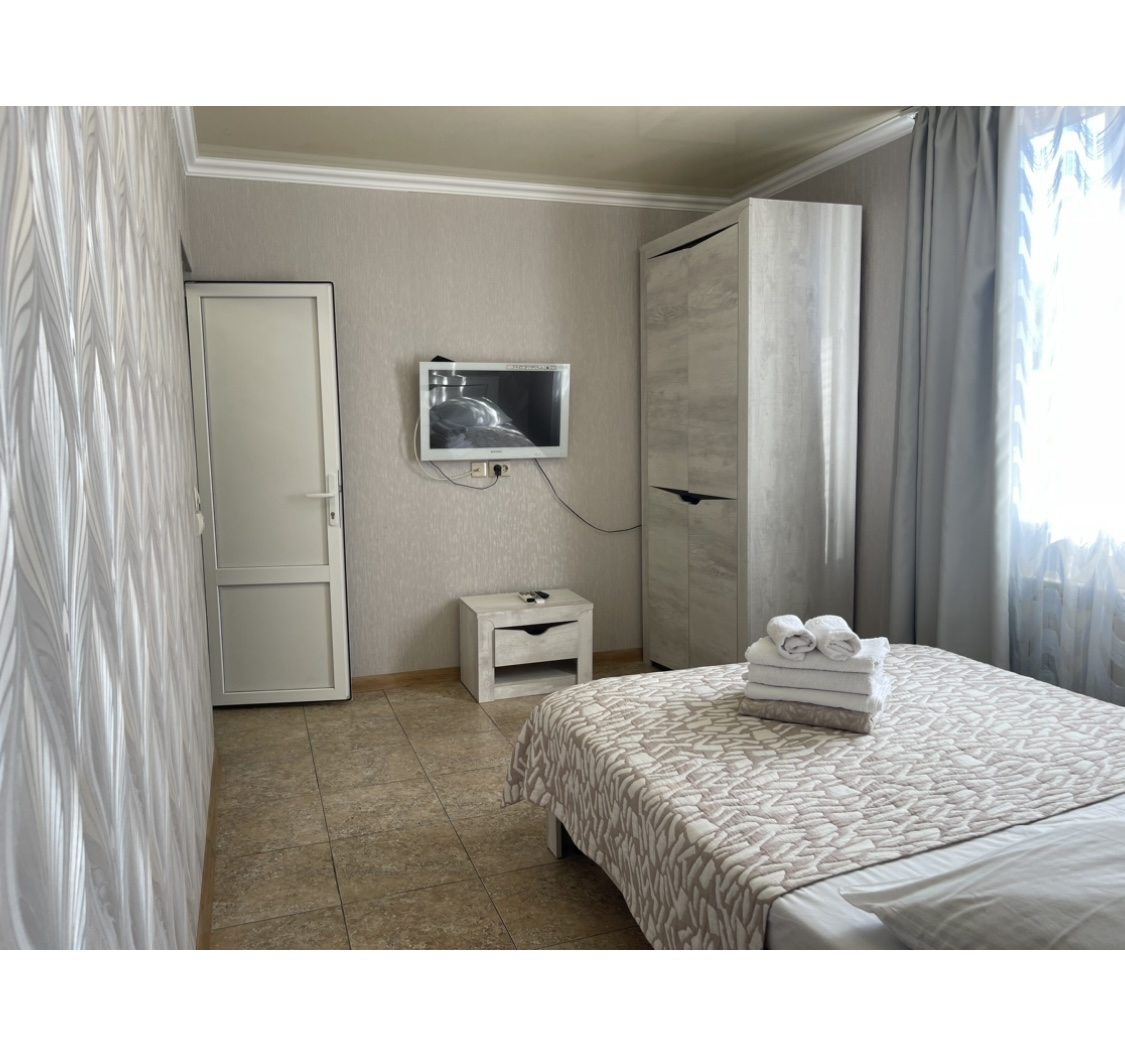 Море не далеко,, через три остановки ржд можно в сочи сгонять, это гостевой дом а не отель не путайте, но в нем было куча полотенец, шампунь жидкое мыло,два стакана для воды, чайника нет, но мне и не надо было.. Мусор выносили каждый день. Вообщем меня все устроила. Вода горячяя всегда была, кондер, телевизор, холодильник рабочий. Учтите это город аэропорта, но в этом номере я ничего не слышала и спала очень крепко.. Замком осталась довольна, тихо, чисто, море, магазин магнит рядом. Спасибо большое за хороший отдых