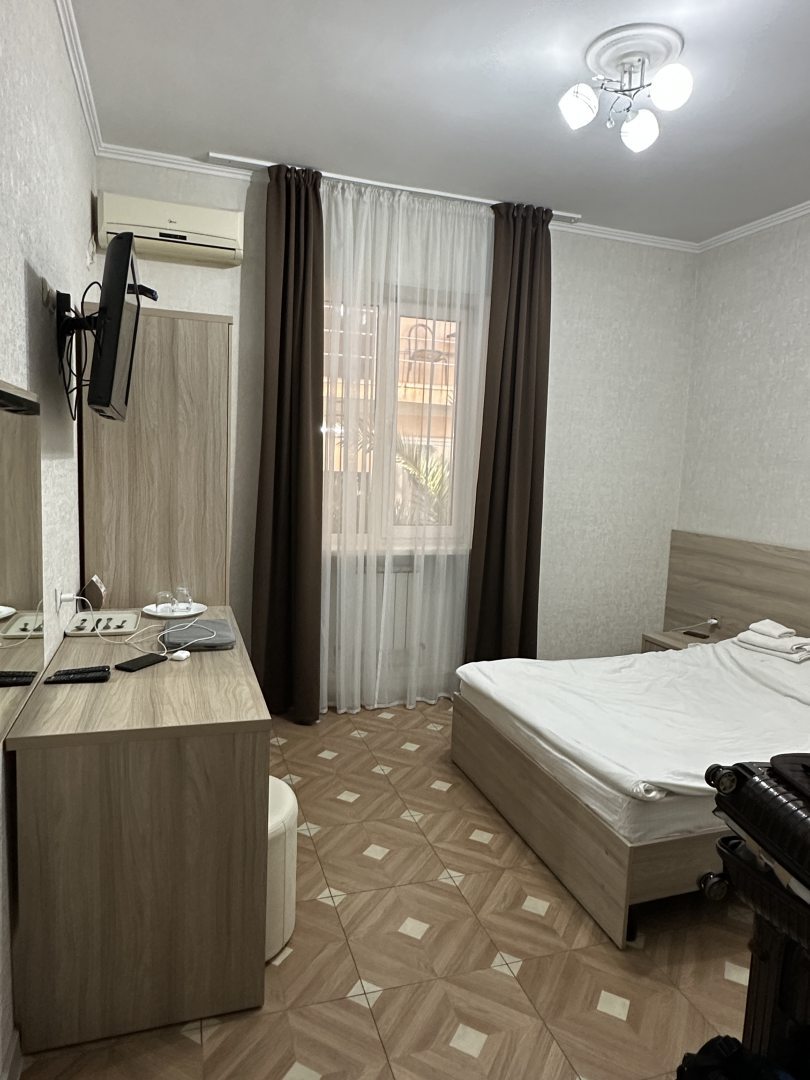 Я не ошиблась,выбрав ваш гостевой дом. Быстрое заселение, несмотря,что приехала раньше. Ну и конечно сам номер,чистый, светлый,уютный. Все ,что нужно для комфортного проживания. Санузел в номере. Я довольна. Почитав отзывы гостей,Я сделала правильный выбор. Спасибо. И ещё,не далеко от аэропорта на автобусе и до моря.
