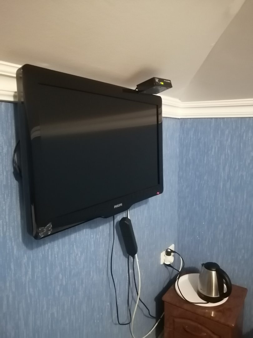 Очень чисто, много полотенец было в номере, чайник со стаканами, телевизор, зеркало во весь рост, большой шкаф, личный балкон в номере, удобства, ванна, туалет, все чистое. Даже освежитель воздуха с ароматом малины.