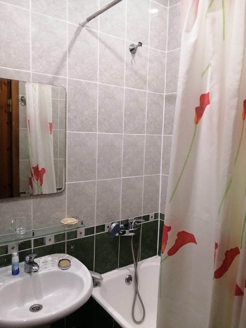 несказанно повезло ибо вместо заказанной двуспальной кровати мне достался двухместный номер! на фото конечно не отразишь всего кайфа, полученного от проживания в Эльбрусе. Но виды из окон - прекрасные. На фото с бордовым занавесом - за ним выход на общий балкон. Ходила туда рано утром, когда все спали и встречала рассвет! в целом - шикарно!!! Спасибо за мой прекрасный отдых! И, кстати, в отношении отсутствия лифта: это не стало для меня проблемой, даже искренне рада была размещению на 5 этаже.