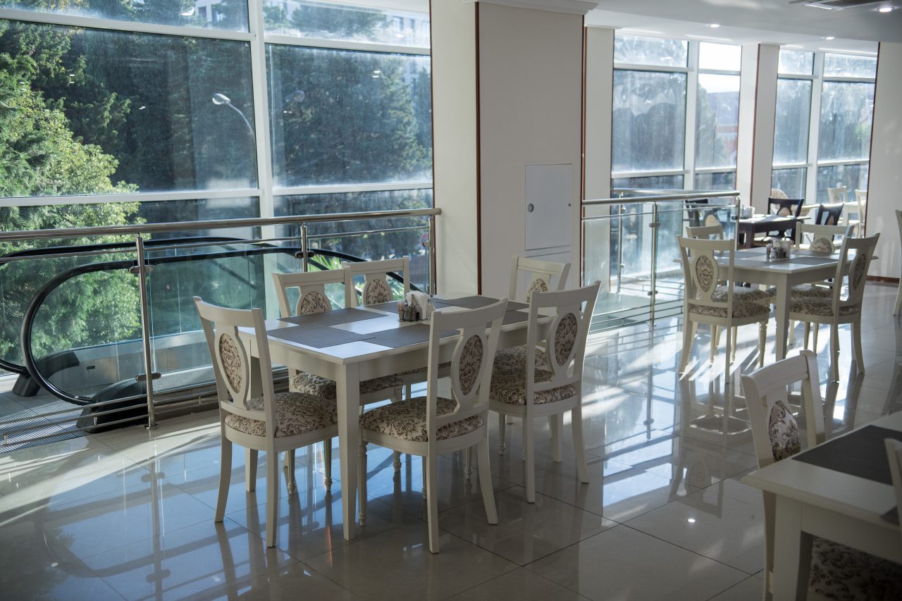 Отель имеет собственный ресторан, где утром сервируется завтрак в формате «шведский стол». Так же по меню можно заказать блюда русской и кавказской кухни. Работает бар с напитками.