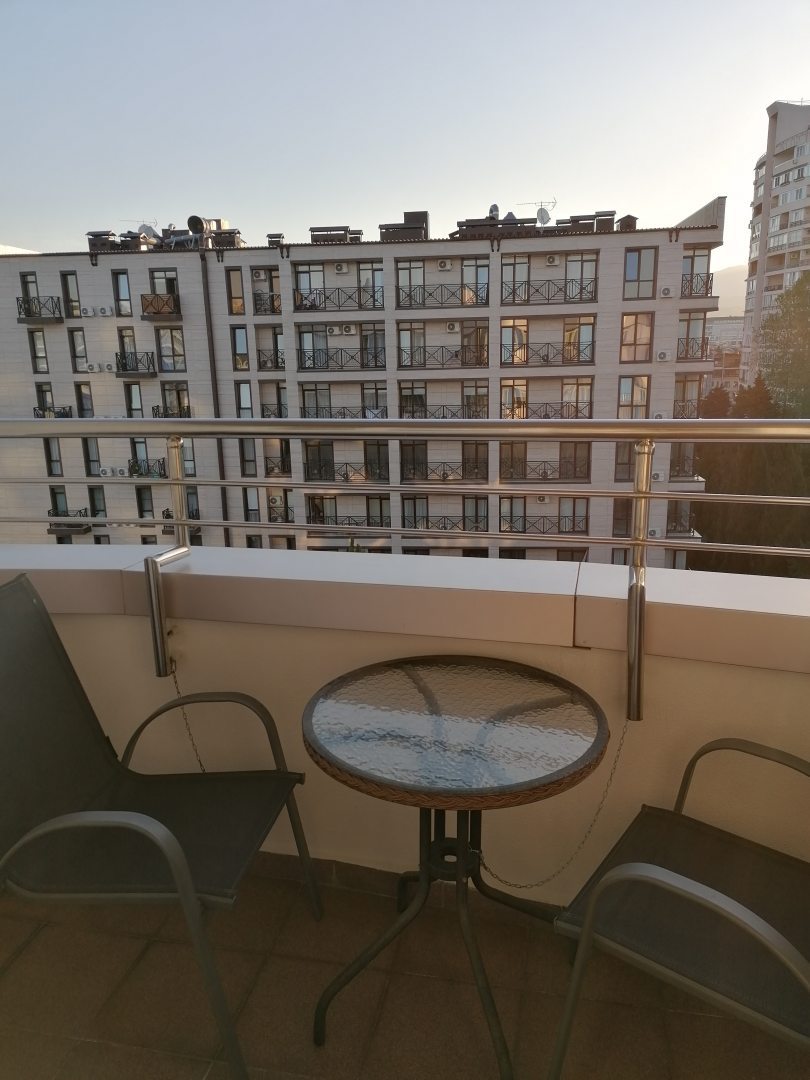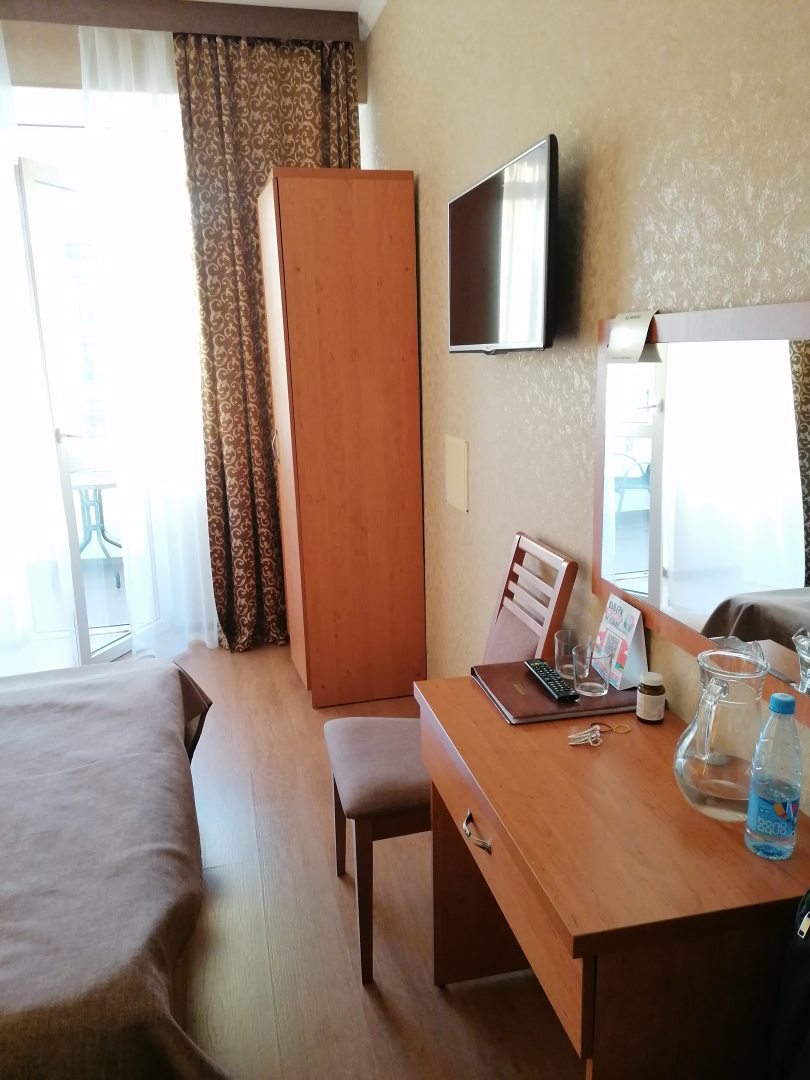Отличный отель,расположен рядом с парком. Рядом с пляжем Чайка. Завтраки хорошие есть,что выбрать. Вечером сидели на балконе слушали музыку из рядом находившегося кафе. В одиннадцать вечера все стихло.