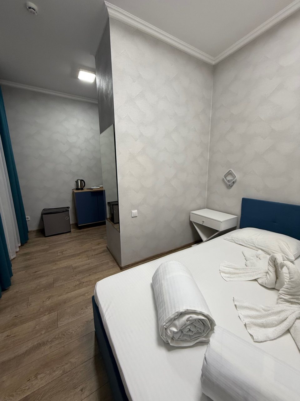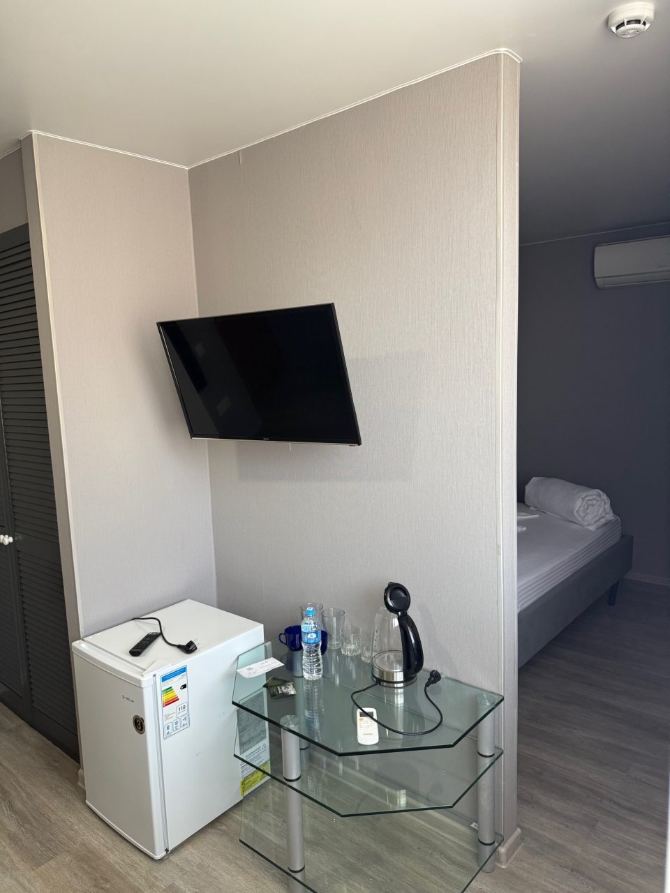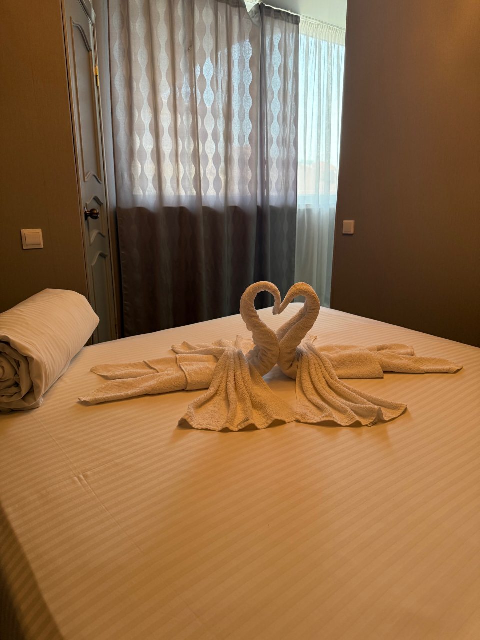 Прекрасный номер, вроде комната одна, но разделена была перегородкой , создавая разные зоны, массивный балкон с видом на бассейн, наличие ванны, а не просто душа, биде даже есть. Отличный кондиционер, прямо морозил нас и в номере и в ходе. Есть спортзал. Нам очень всё понравилось, если бы не расположение, ну хоть похудела) зато именно на этой улице надземный переход, чтобы пройти к морю