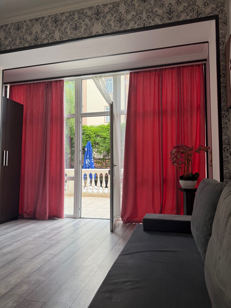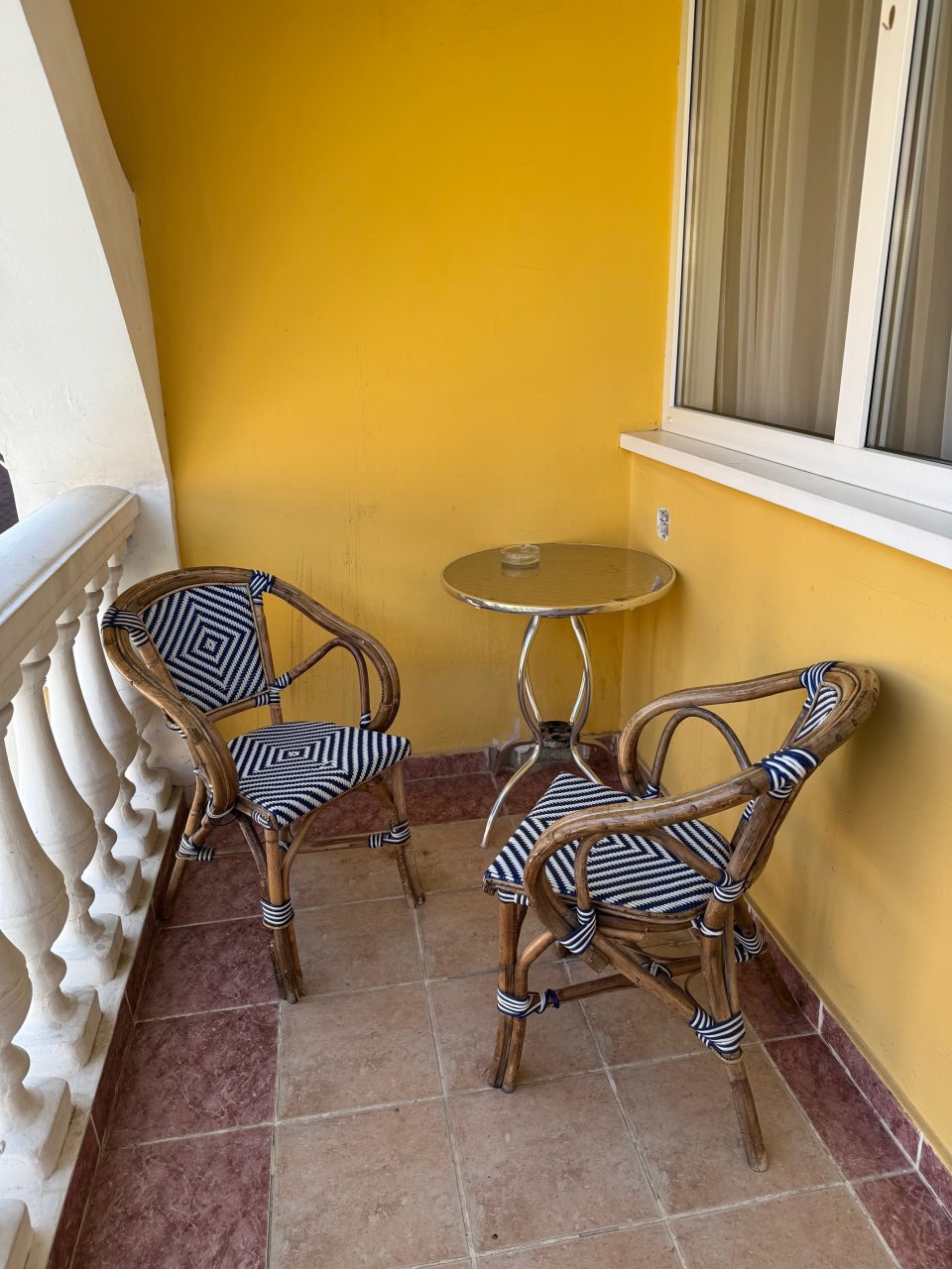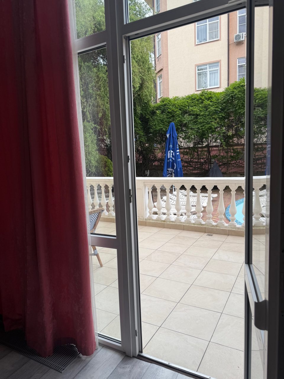 Прекрасный номер, вроде комната одна, но разделена была перегородкой , создавая разные зоны, массивный балкон с видом на бассейн, наличие ванны, а не просто душа, биде даже есть. Отличный кондиционер, прямо морозил нас и в номере и в ходе. Есть спортзал. Нам очень всё понравилось, если бы не расположение, ну хоть похудела) зато именно на этой улице надземный переход, чтобы пройти к морю
