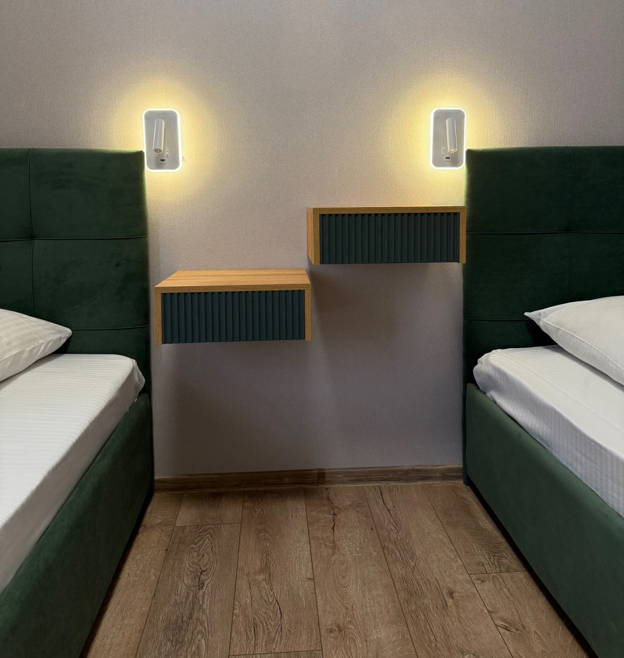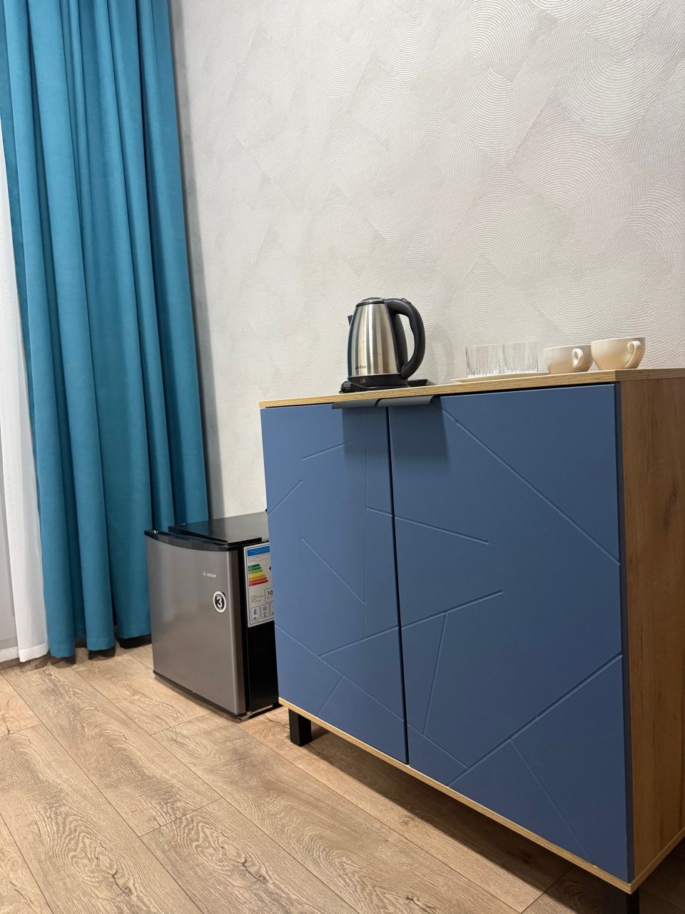 Стандартные номера оборудованы комфортабельной мебелью, кондиционером, холодильником, Wi-Fi. Категория «люкс» предлагает размещение в раздельной гостиной и спальной комнате. В ванной есть фен, комплект полотенец, средства личной гигиены.