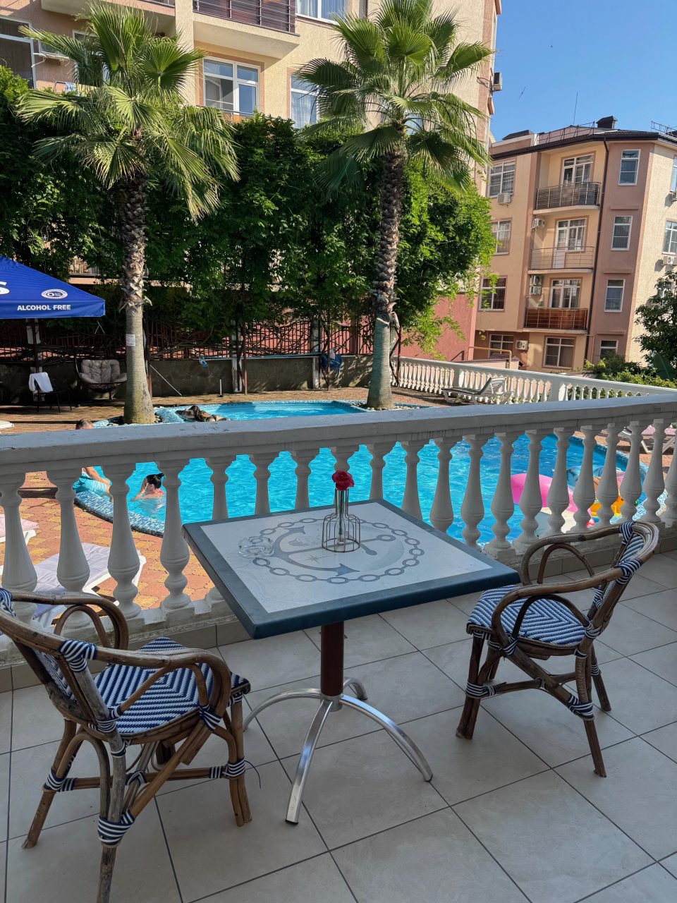 Из недостатков: улица Медовая практически вертикальная, в жару очень тяжело подниматься. Ну ещё бы в номер добавила пару тарелочек, были только чашки и бокалы