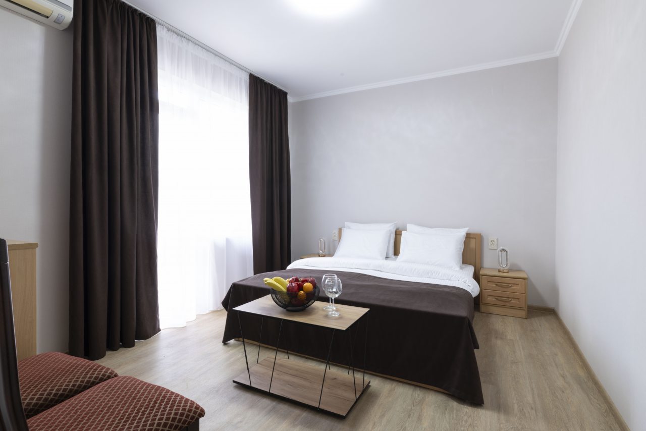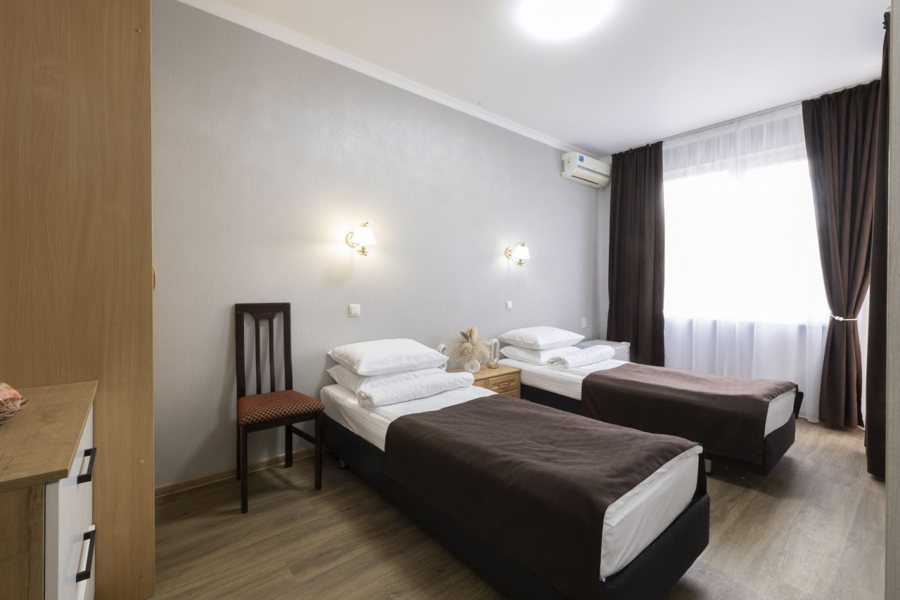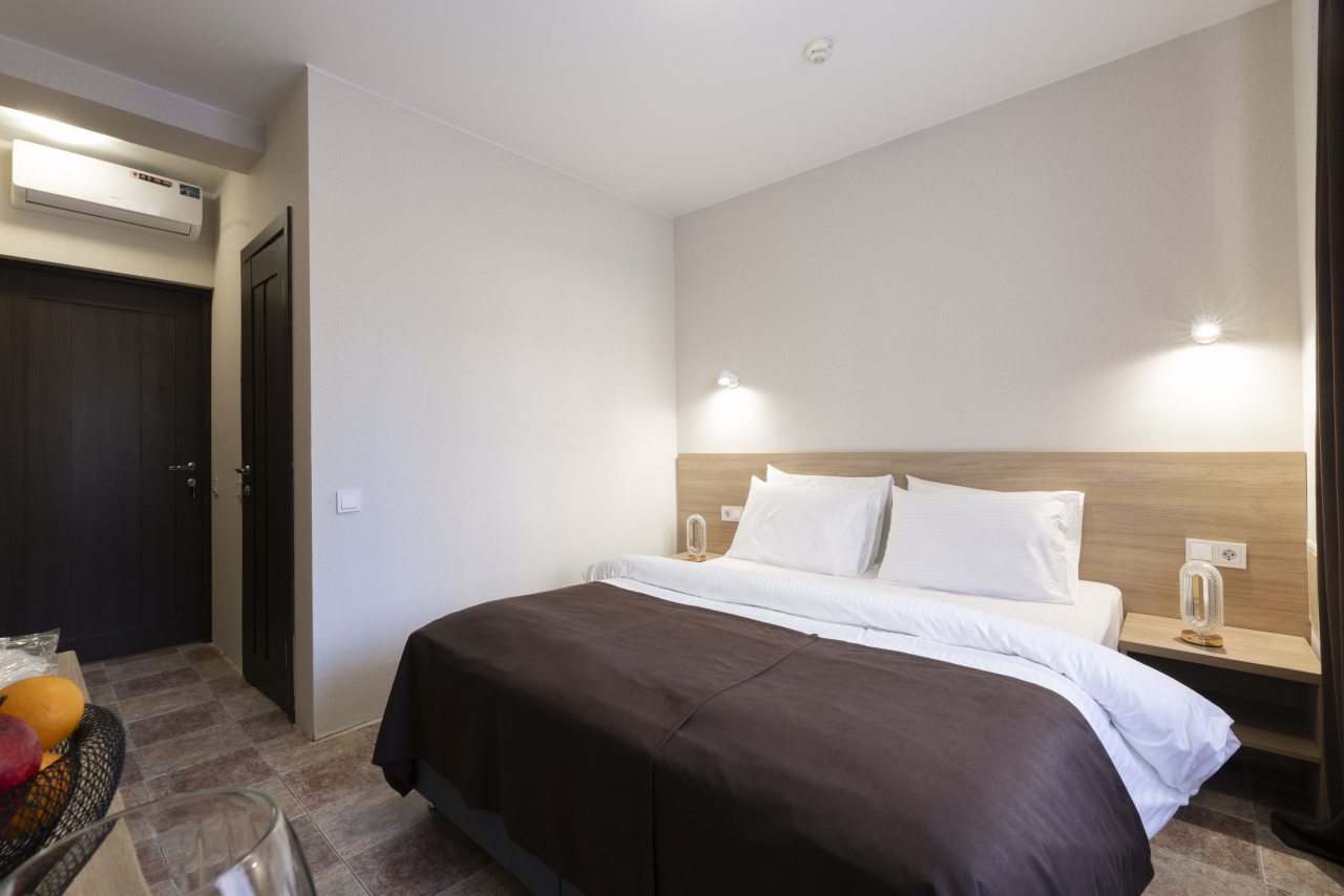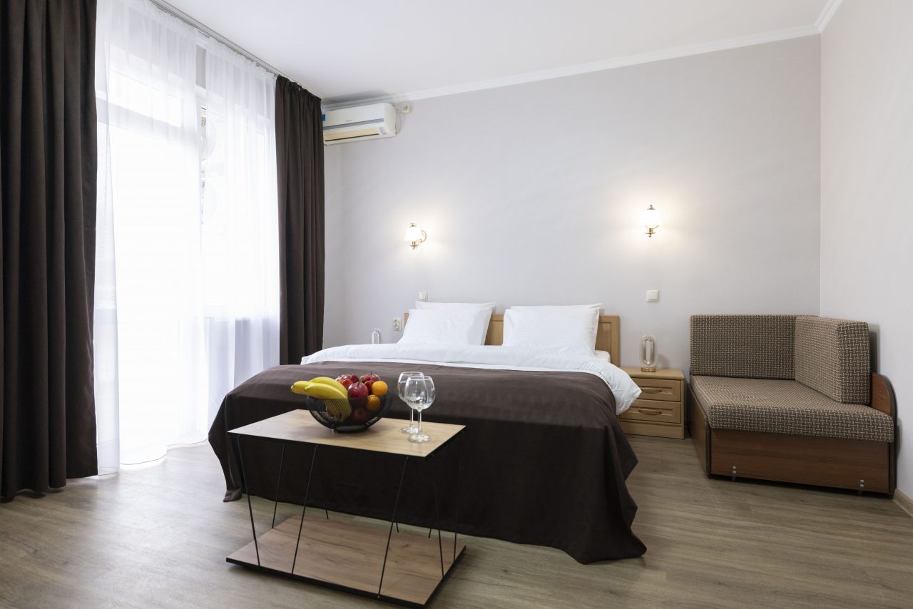 Отель небольшой, расположен на тихой улице, до ближайшего пляжа 5-7 минут ходьбы. В пешей доступности есть магазины, столовые, кафе, торговые ряды. Я проживала в номере на первом этаже, не большой номер с прихожей, удобная двуспальная кровать, мини холодильник, тумбы для хранения, два стула, есть кресло дополнительно, прихожая оборудованна вешалкой с небольшим зеркалом, номер без балкона, для сушки одежды есть раздвижная небольшая сушилка. Все чисто, отличное белье постельное, полотенца. Есть гладильная доска с утюгом в коридоре, кулер, микроволновка на ресепшине. Двор тоже не большой, есть бассейн.Сам отель находится в Имеритинском районе Адлера