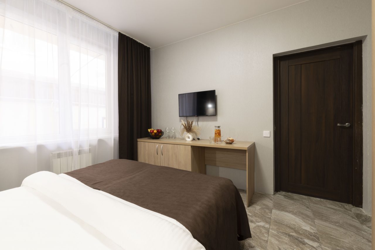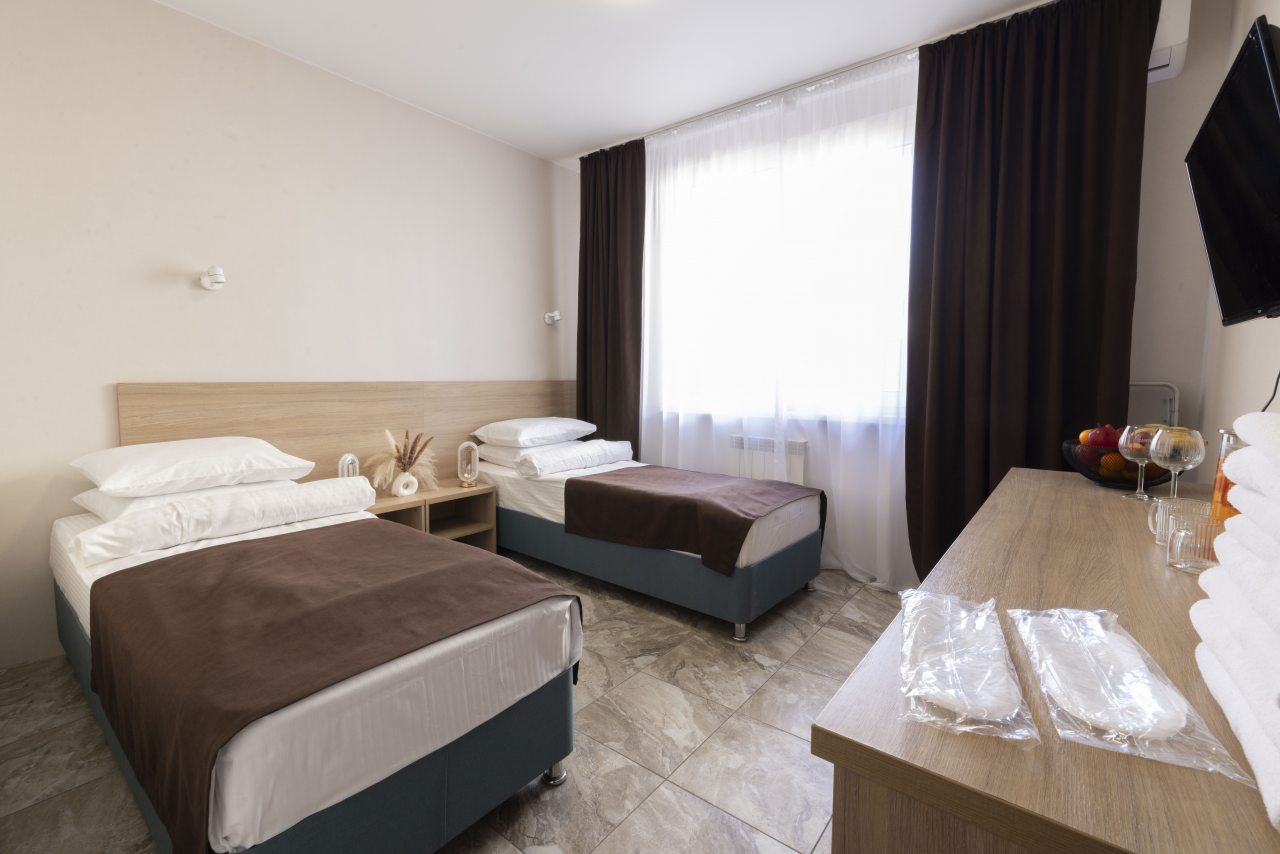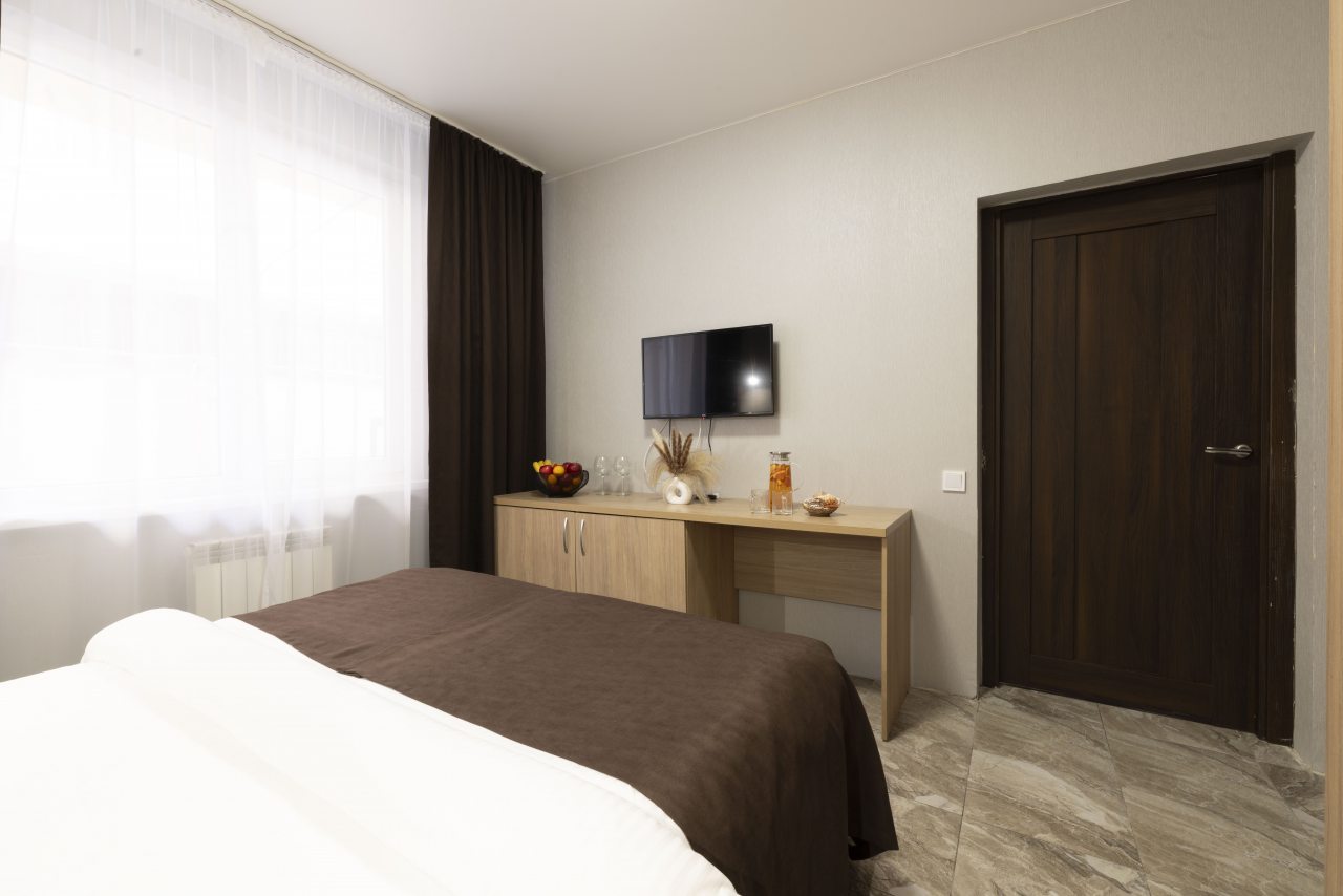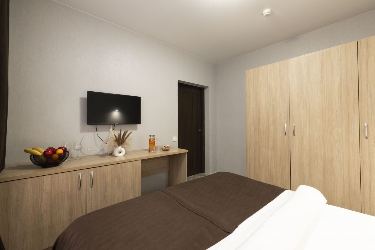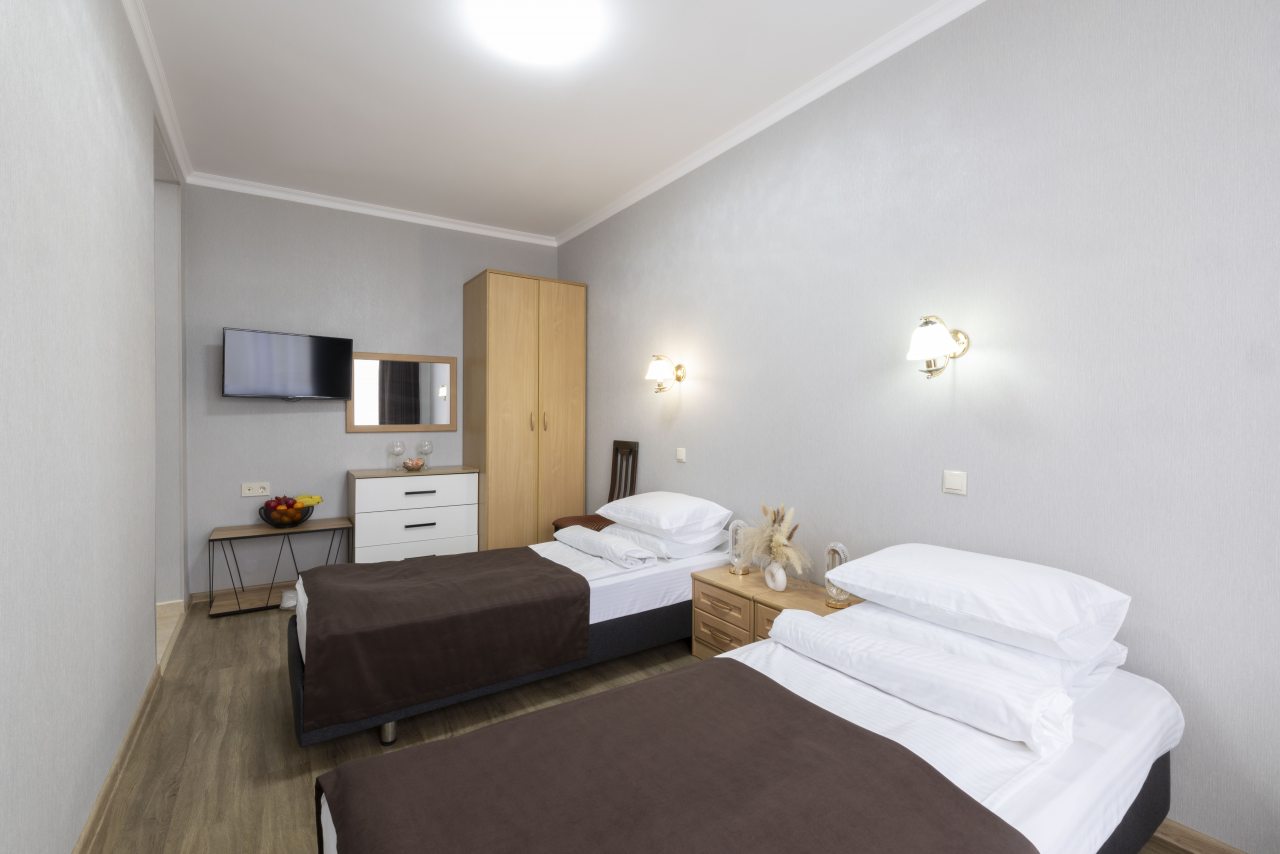 Отель небольшой, расположен на тихой улице, до ближайшего пляжа 5-7 минут ходьбы. В пешей доступности есть магазины, столовые, кафе, торговые ряды. Я проживала в номере на первом этаже, не большой номер с прихожей, удобная двуспальная кровать, мини холодильник, тумбы для хранения, два стула, есть кресло дополнительно, прихожая оборудованна вешалкой с небольшим зеркалом, номер без балкона, для сушки одежды есть раздвижная небольшая сушилка. Все чисто, отличное белье постельное, полотенца. Есть гладильная доска с утюгом в коридоре, кулер, микроволновка на ресепшине. Двор тоже не большой, есть бассейн.Сам отель находится в Имеритинском районе Адлера