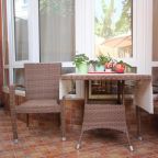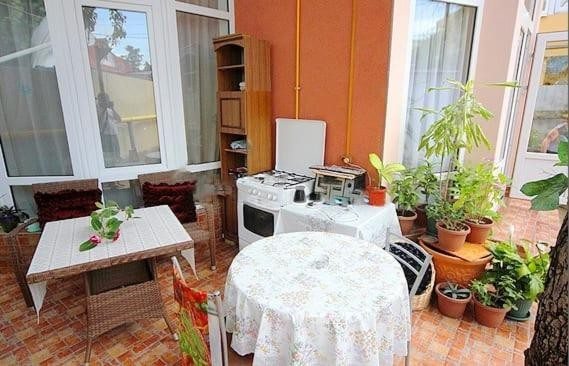 В гостевом доме есть общая кухня с плитой и раковиной, где можно готовить себе еду самостоятельно. Также в здании находится небольшое кафе, где по меню можно заказать блюда русской и кавказской кухонь.
