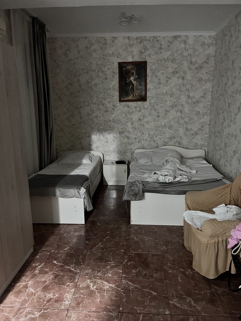 Из недостатков: мне не хватало махрового халата, но я его купила. Нет фена и коврика под ноги в санузле! Но это же не отель 5 звезд и я это понимала. Но коврики купить в санузлы было бы правильно!