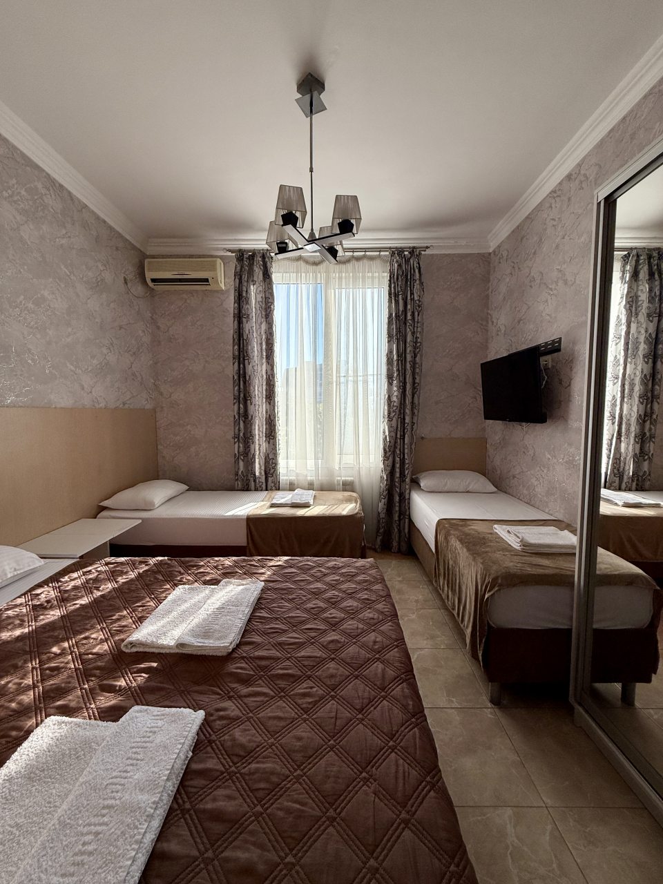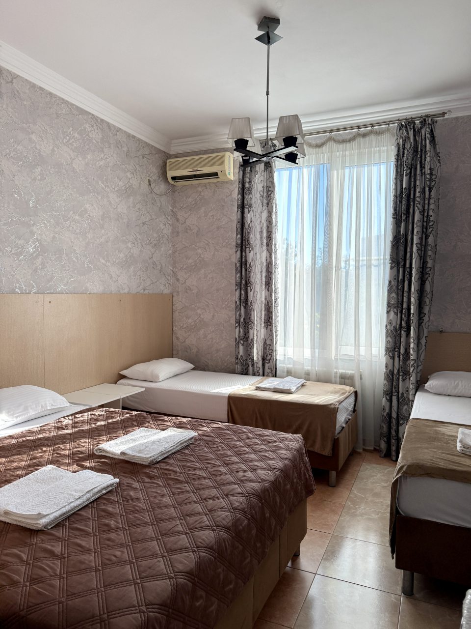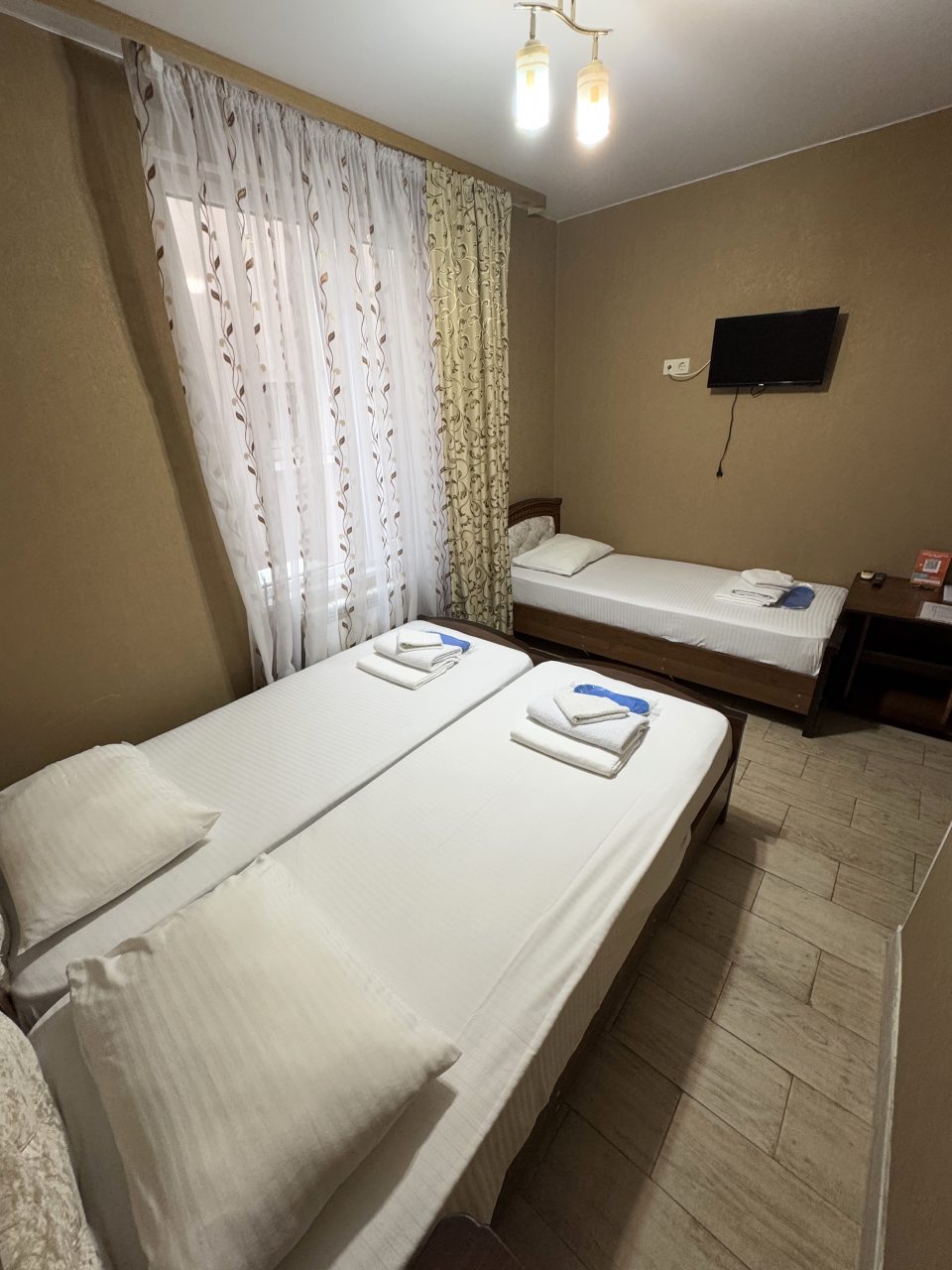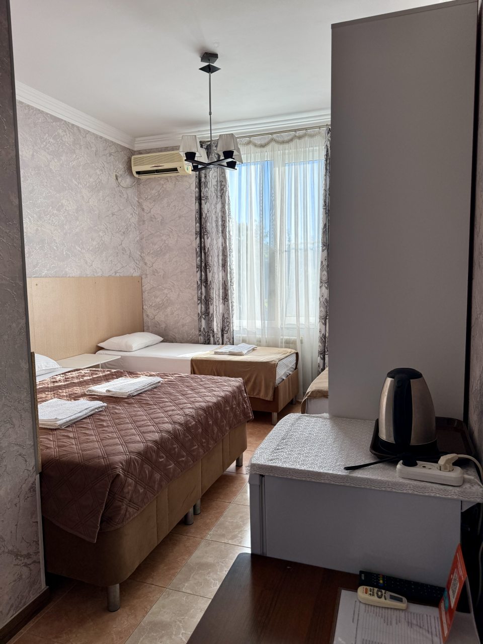 Здравствуйте! Спасибо за проведённое время в вашем отеле . Довольны условиями проживания, наличием различных бытовых приспособлений (фен, утюг, столовая посуда, кондиционер и т. д.). Отмечаем особую заботу администратора Жанны. Желаем вам дальнейшего роста в туристическом бизнесе