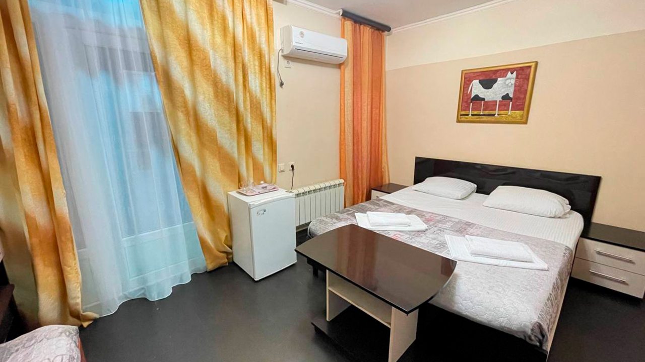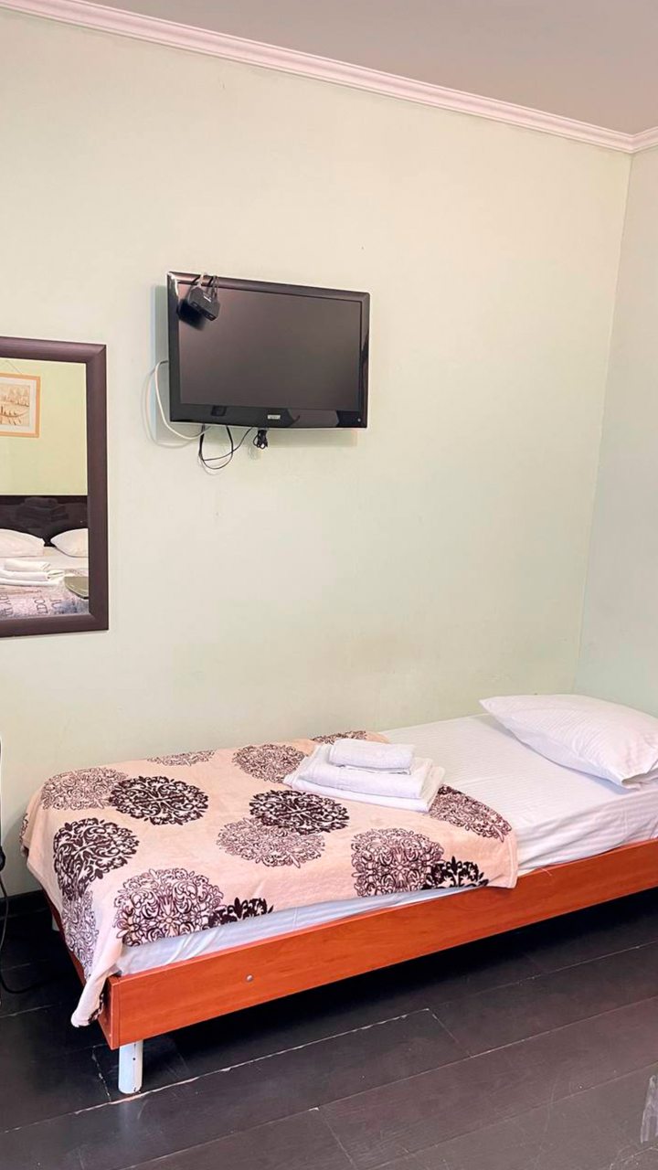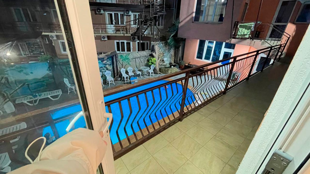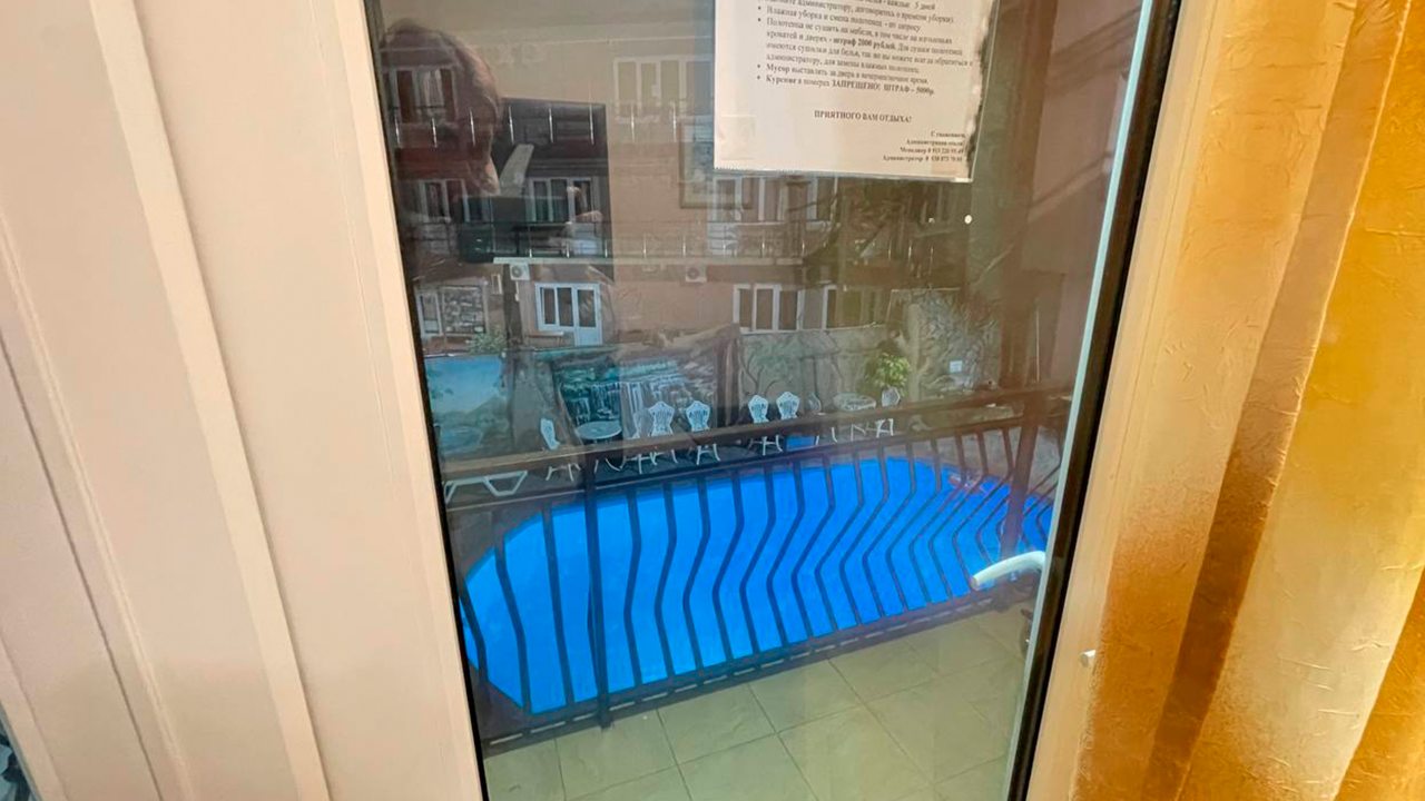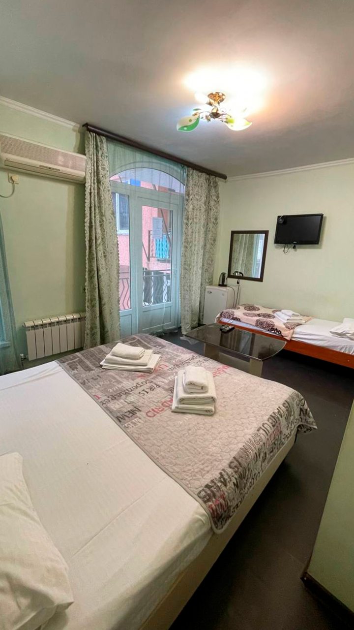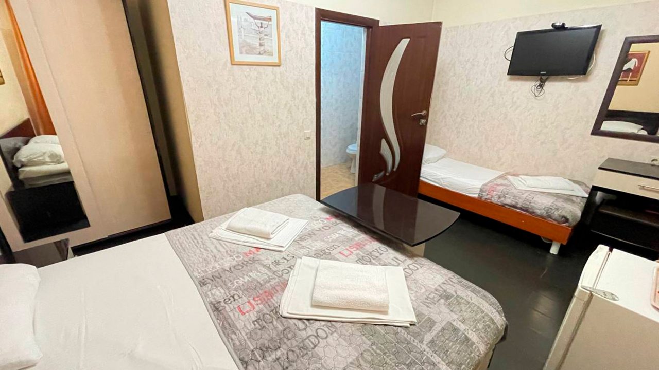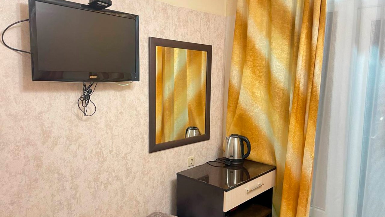 Отдыхала в начале декабря. Отель расположен в центре Адлера. Номер чистый, проживала одна в трёхместном номере. В номере есть кондиционер, телевизор, холодильник, чайник, посуда, вайфай, туалетный столик с зеркалом, огромный шкаф-купе с зеркальными дверями, потолок с подсветкой. Номер чистый, белье свежее, на территории отеля есть бассейн с подсветкой под открытым небом, температура воды 36 градусов. Чистый санузел, с душевой. Соседей не видела и не слышала, никто не мешал, ночью спала прекрасно, никаких шумов. Не довелось оценить кухню, так как питалась в в городе.