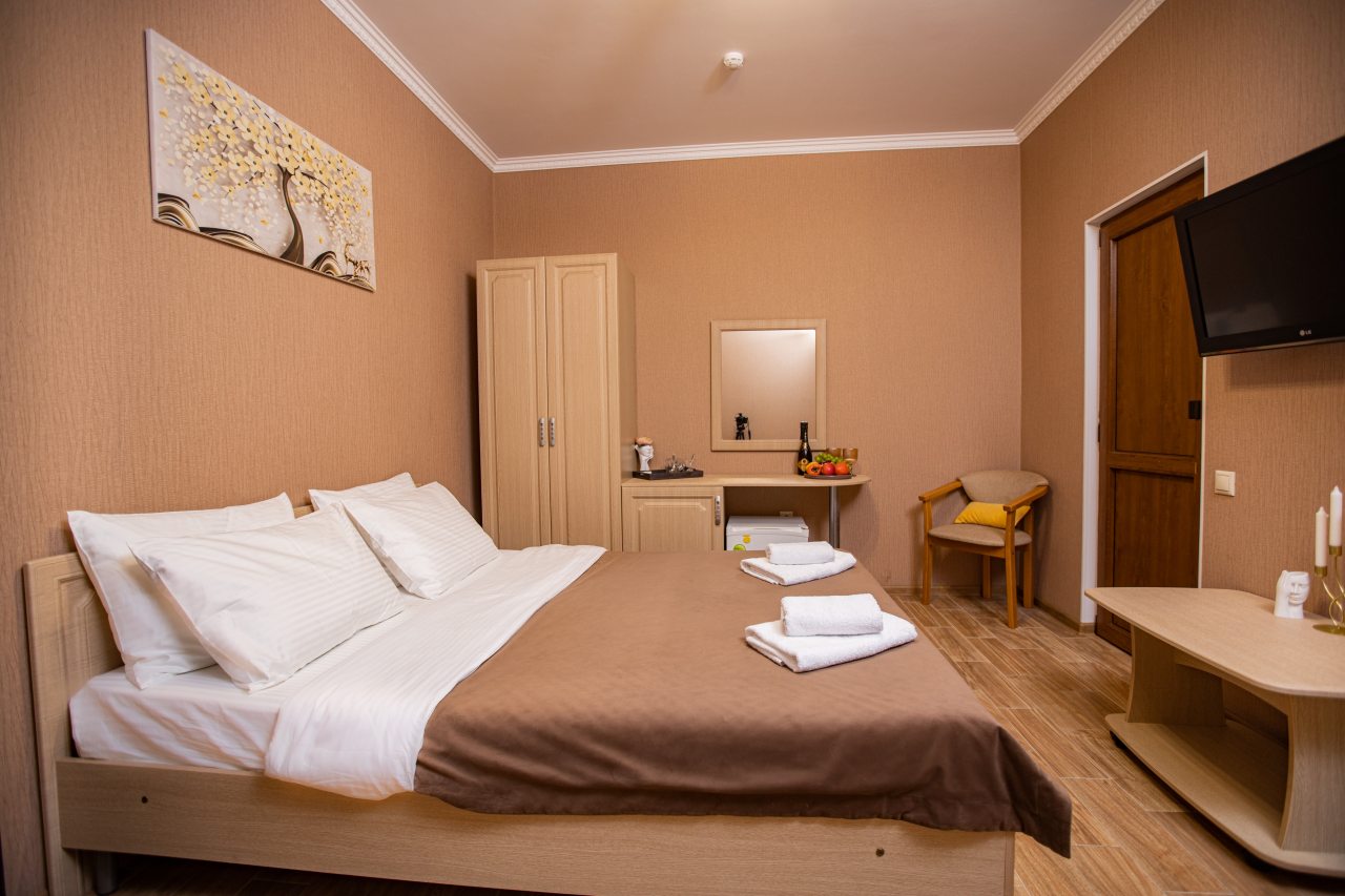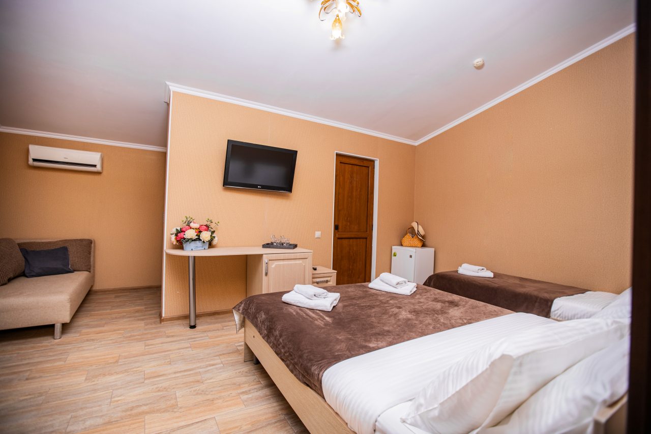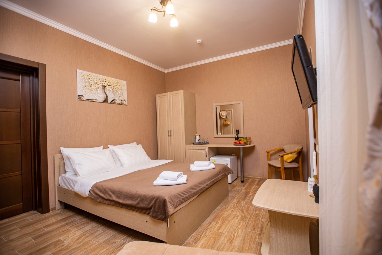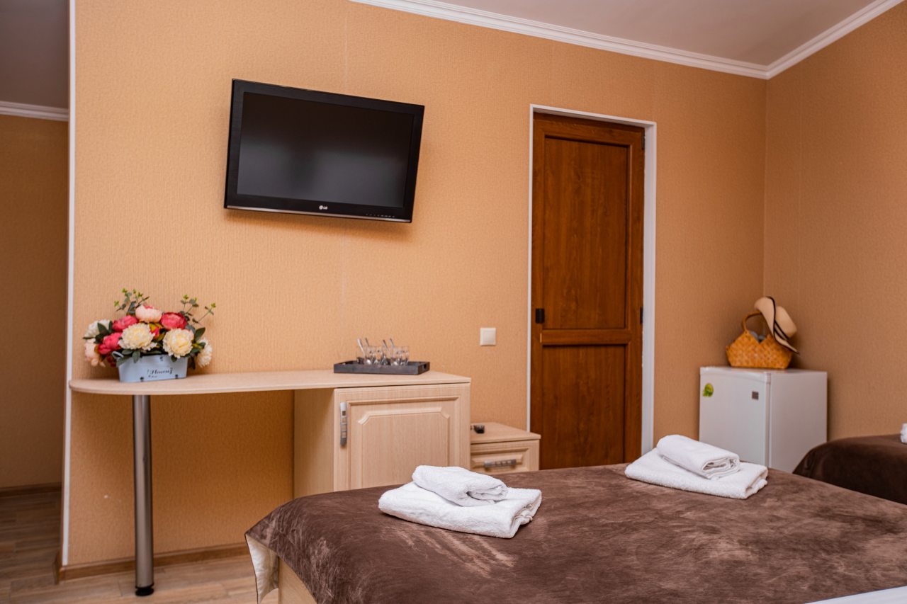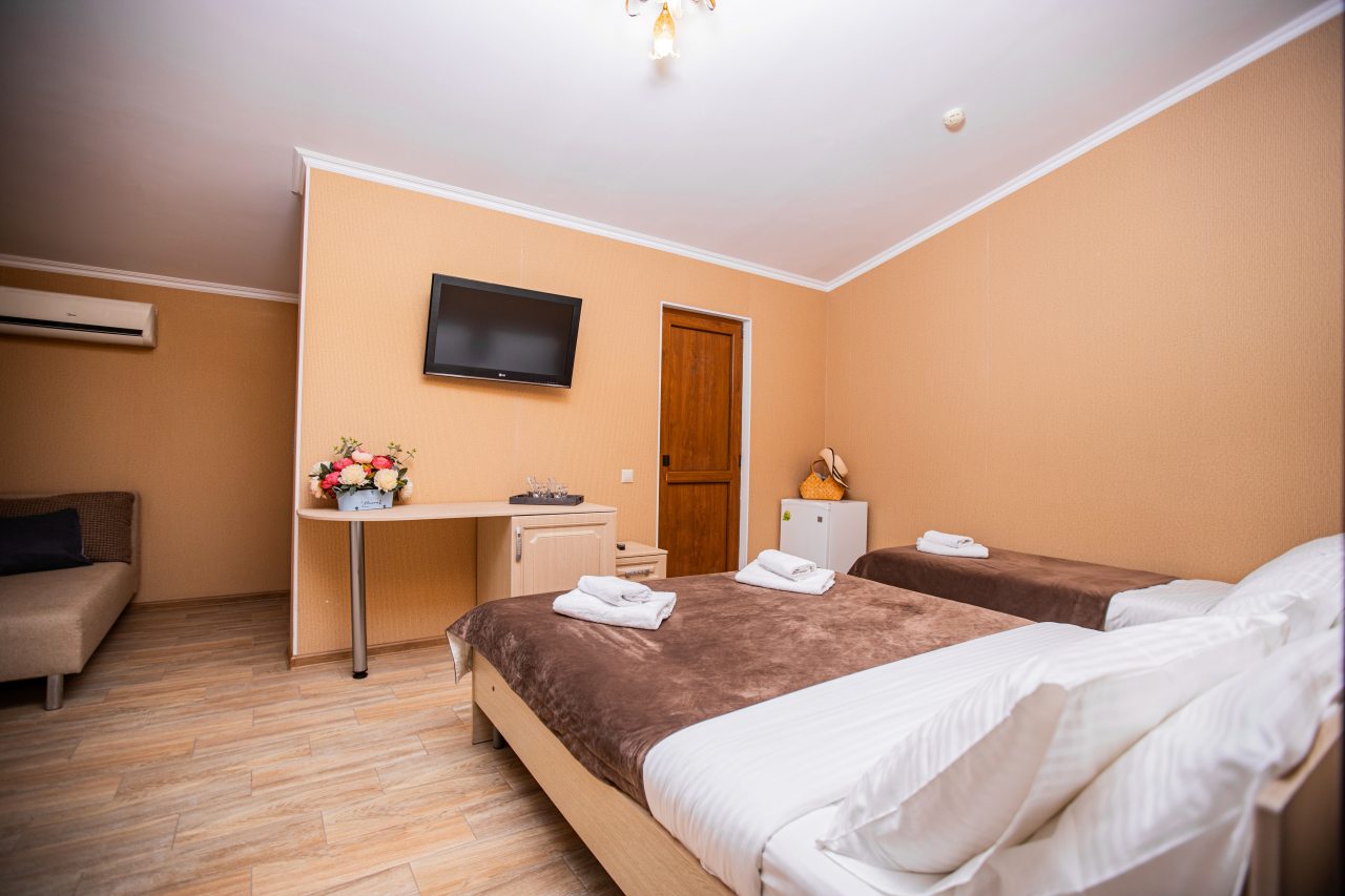 Для комфортного проживания гостям предлагаются номера разной категории и вместимости. Номер оснащен спальными местами с чистым бельём, качественной мебелью, современной техникой. Есть доступ к скоростному интернету. Санузел оборудован необходимой сантехникой.