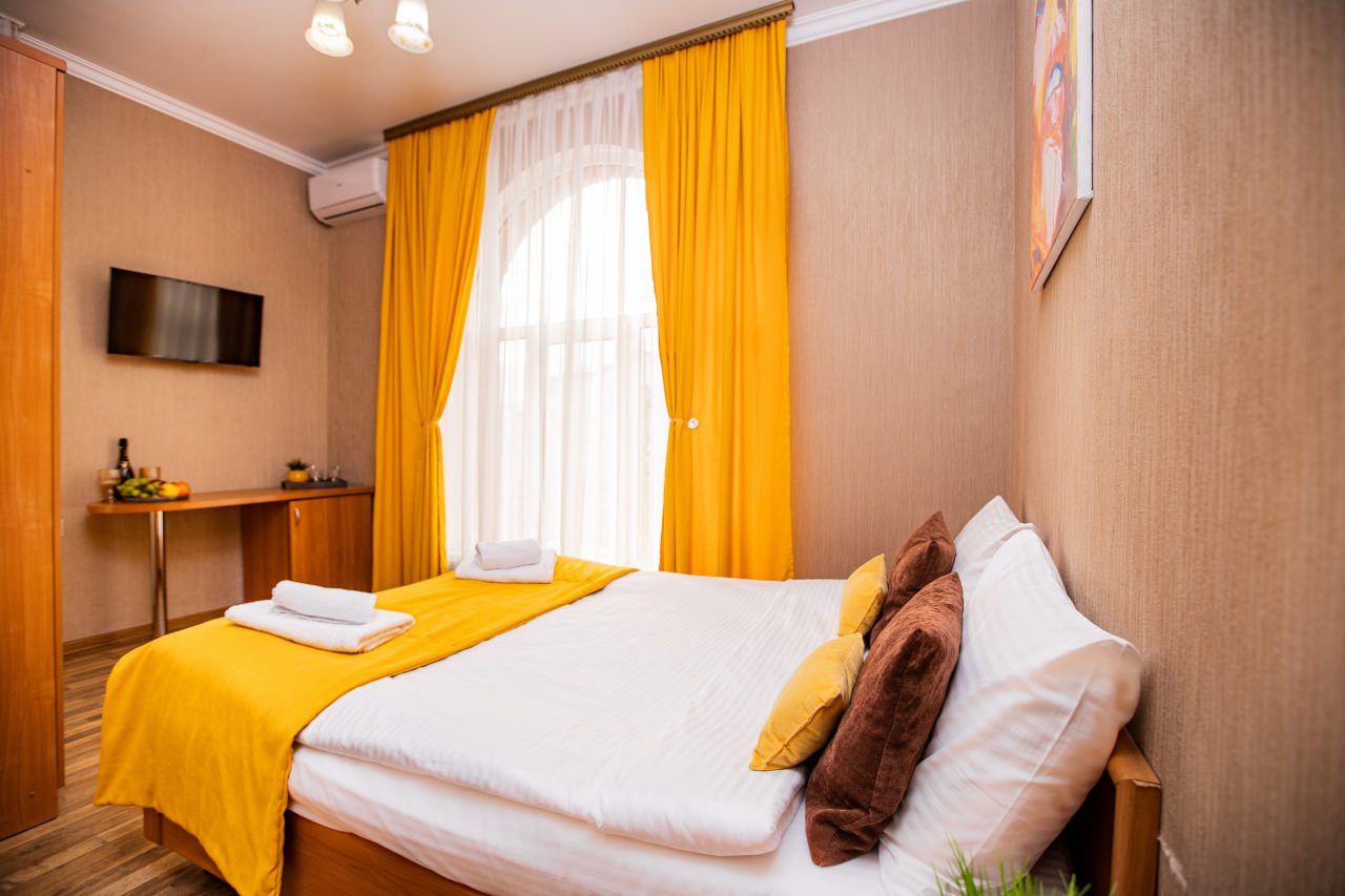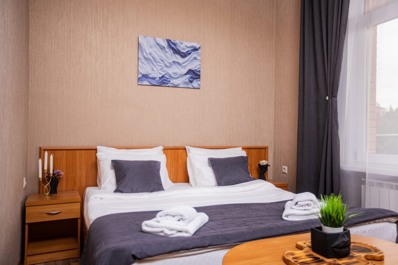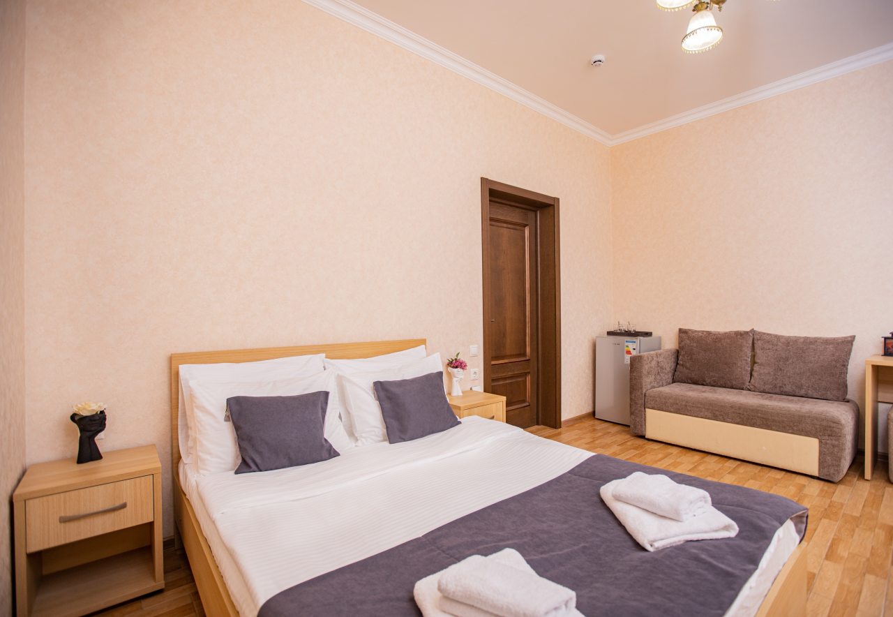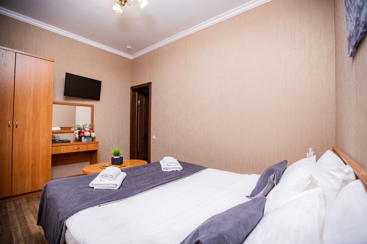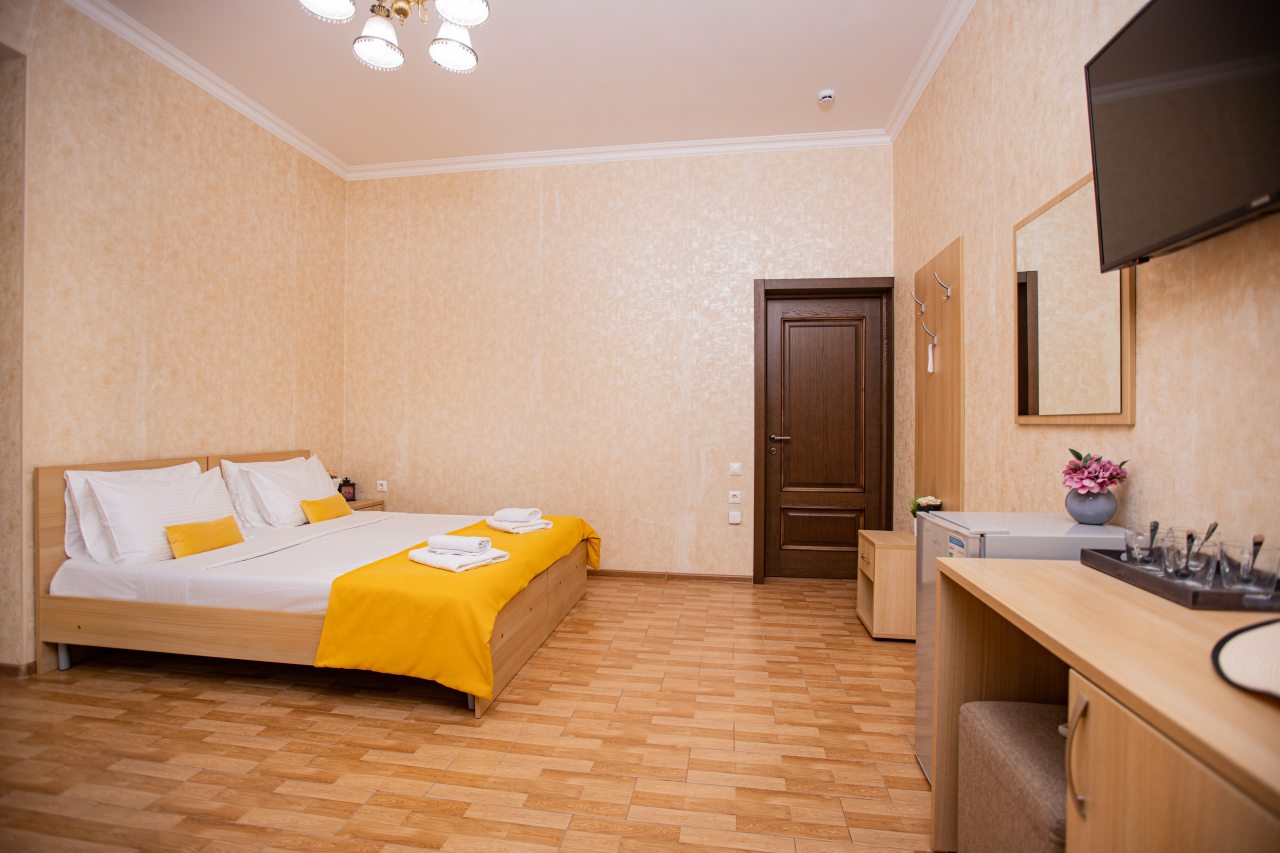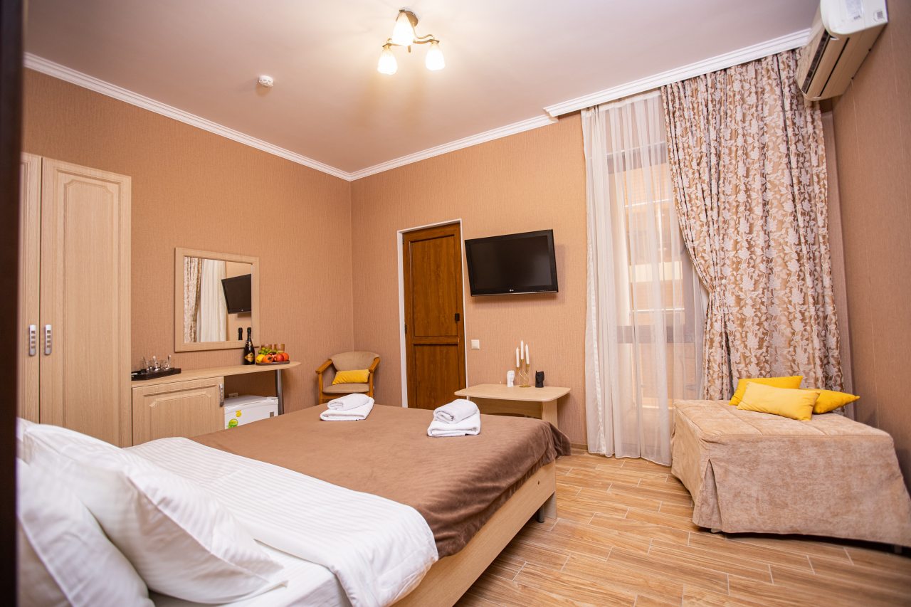Для комфортного проживания гостям предлагаются номера разной категории и вместимости. Номер оснащен спальными местами с чистым бельём, качественной мебелью, современной техникой. Есть доступ к скоростному интернету. Санузел оборудован необходимой сантехникой.