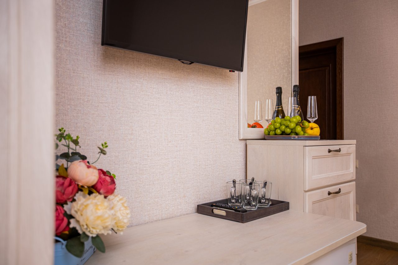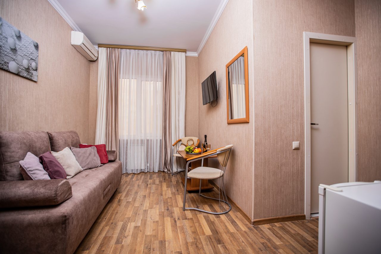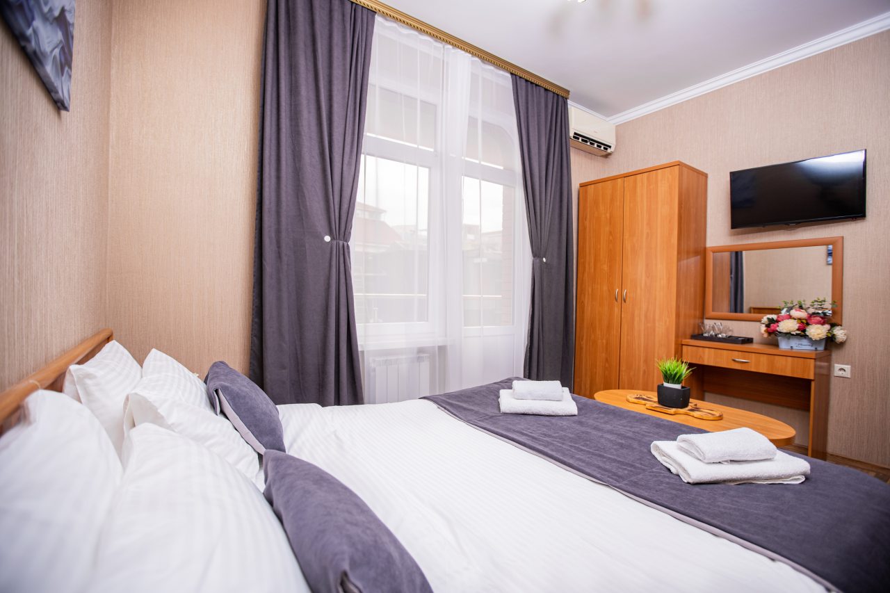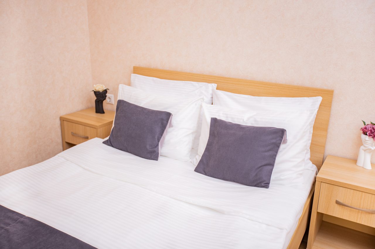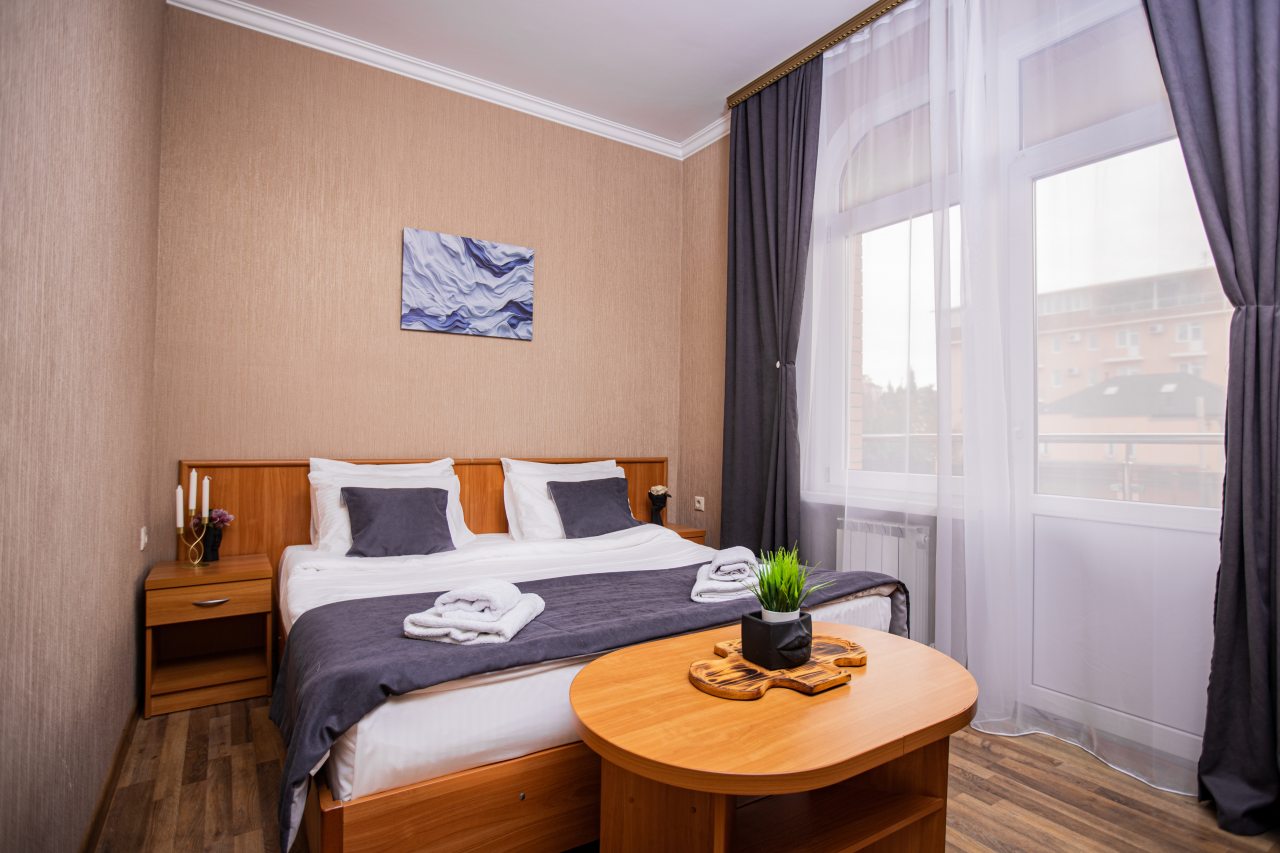 Для комфортного проживания гостям предлагаются номера разной категории и вместимости. Номер оснащен спальными местами с чистым бельём, качественной мебелью, современной техникой. Есть доступ к скоростному интернету. Санузел оборудован необходимой сантехникой.