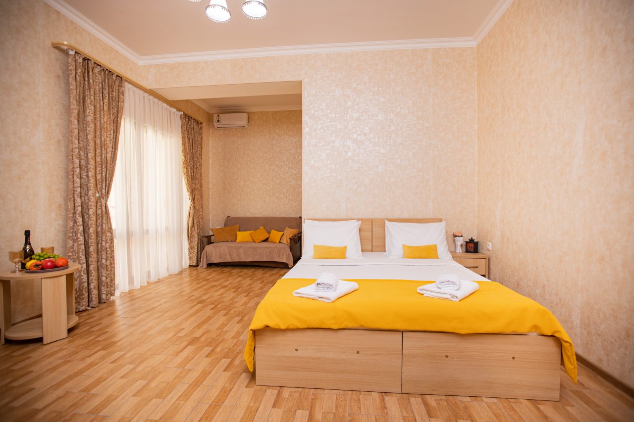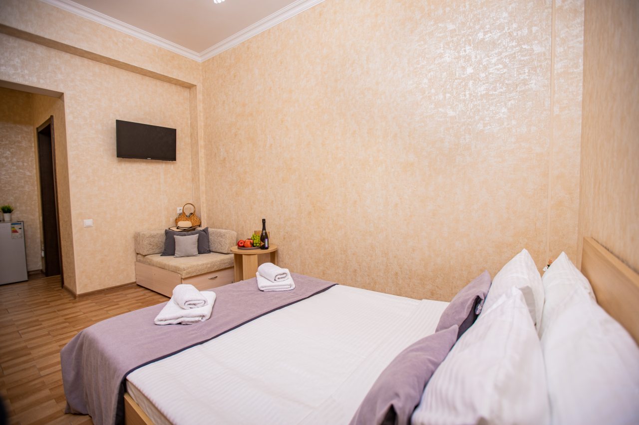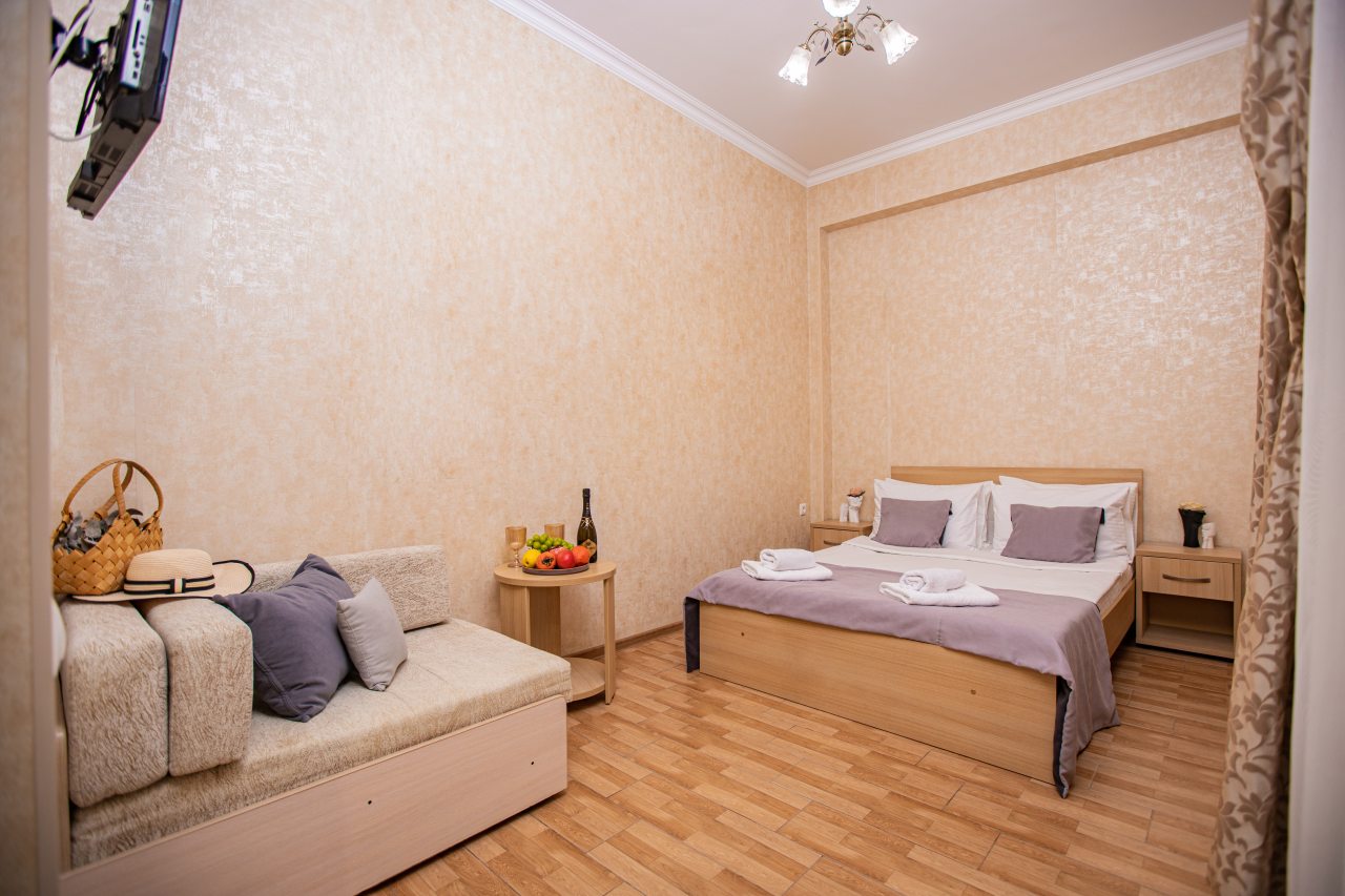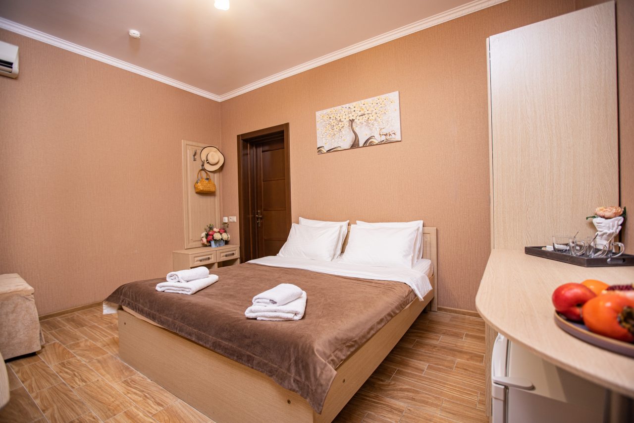 Расположение хорошее 5-10 минут и у моря. Чистота в номере была отличная когда заселились, только за весь период проживания с маленьким ребенком не пришли не уточнили нужна ли уборка,