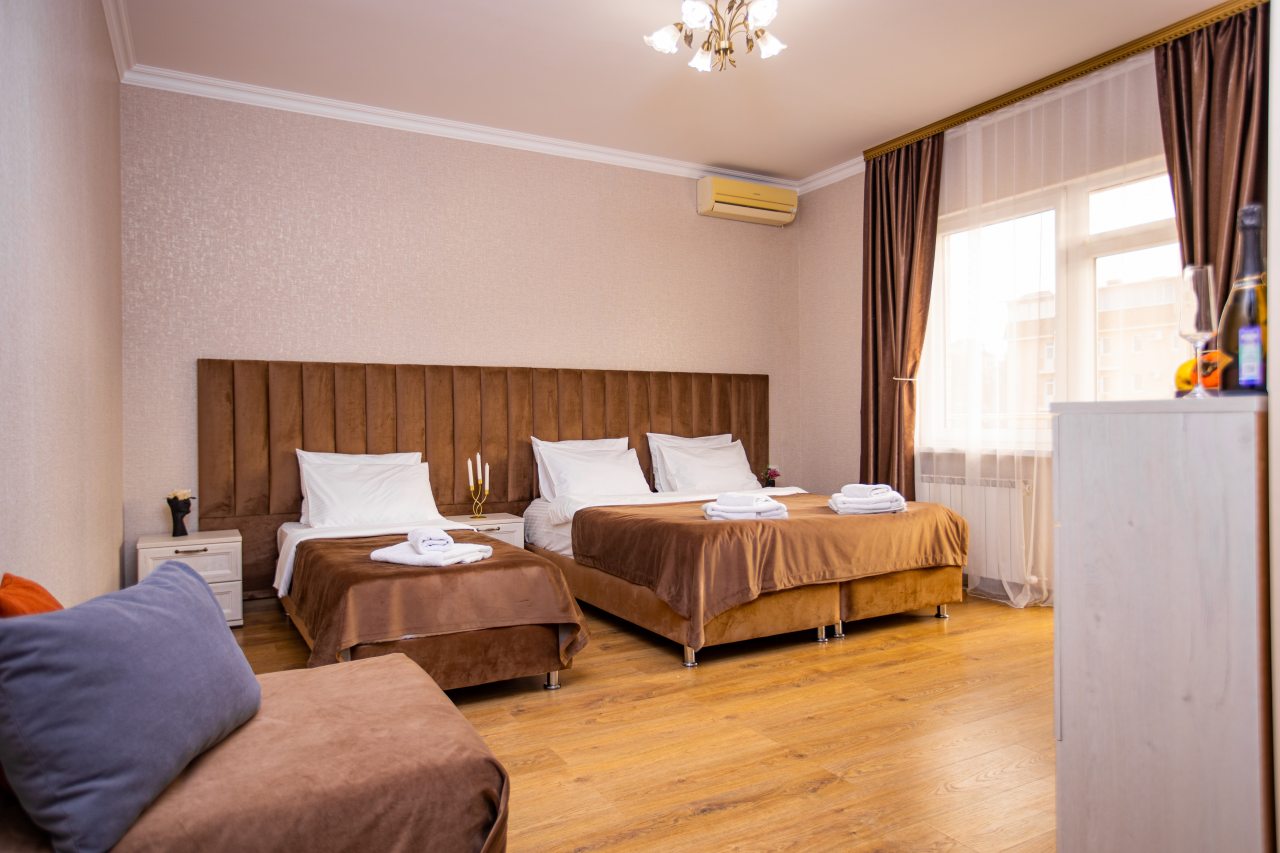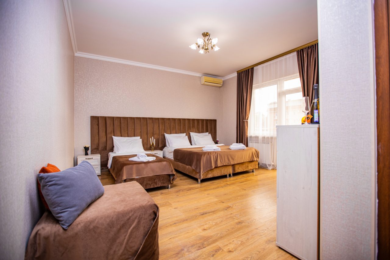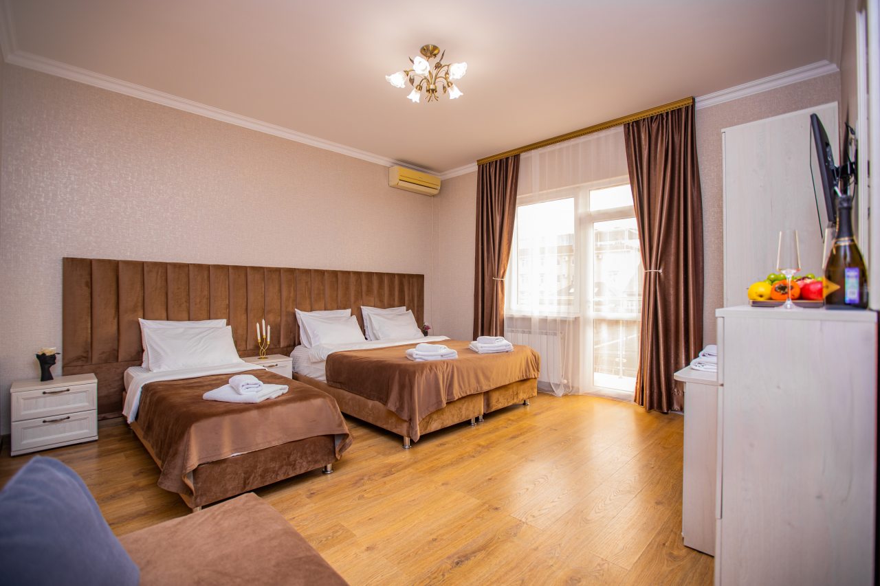 - Трёхместный и более (Стандарт 4-местный с двуспальной кроватью и балконом)