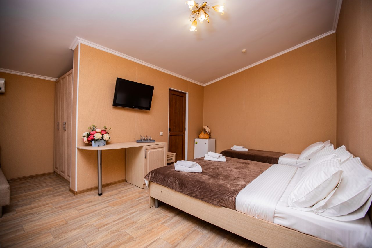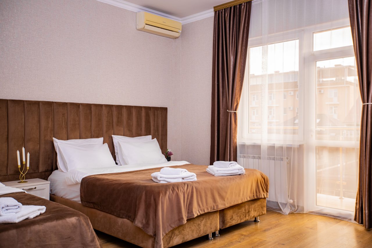 - Трёхместный и более (Стандарт 3-местный с двуспальной кроватью и балконом)