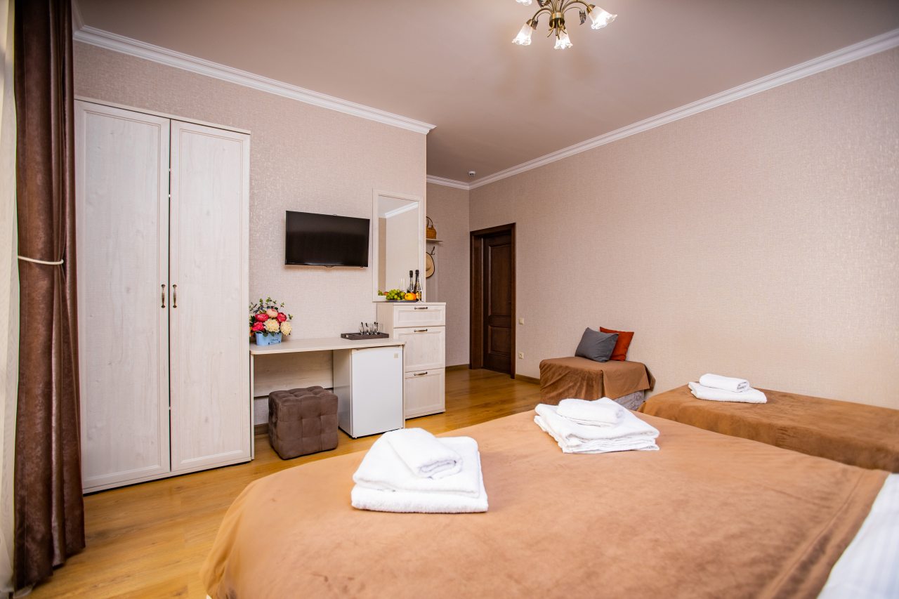 - Трёхместный и более (Стандарт 3-местный с двумя раздельными кроватями и балконом)
