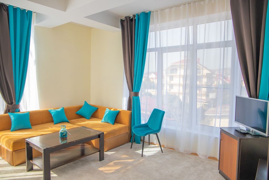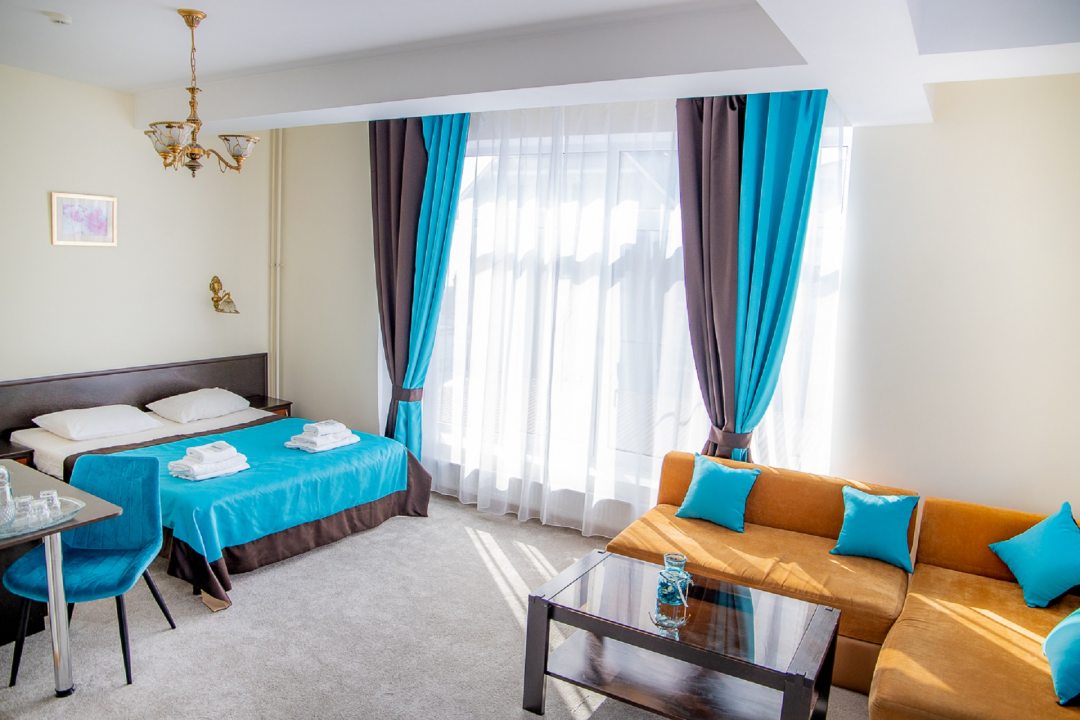 Приятная атмосфера отеля, классический интерьер в сочетании с современной техникой и оборудованием позволит расслабиться нашим гостям. Отель оснащен лифтом. Все номера имеют внутреннюю цифровую связь, телевизоры, сплит-системы. Номера Люкс, оснащены балконами с прекрасным видом на море.- это заменить в описании номера.