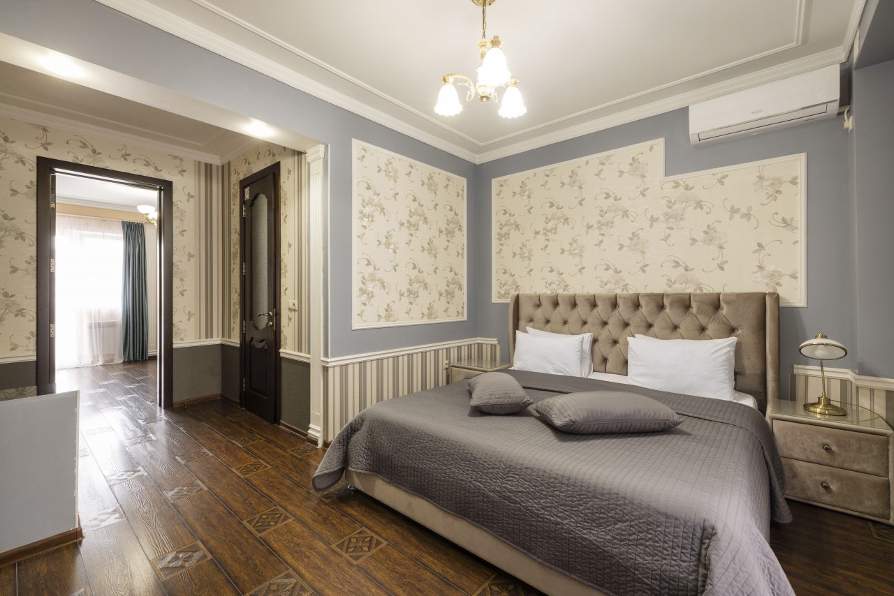Номера представлены в европейском стиле с новой мебелью и евро ремонтом. В каждом имеется личная ванная комната, сплит-система, кабельное телевидение, холодильник.