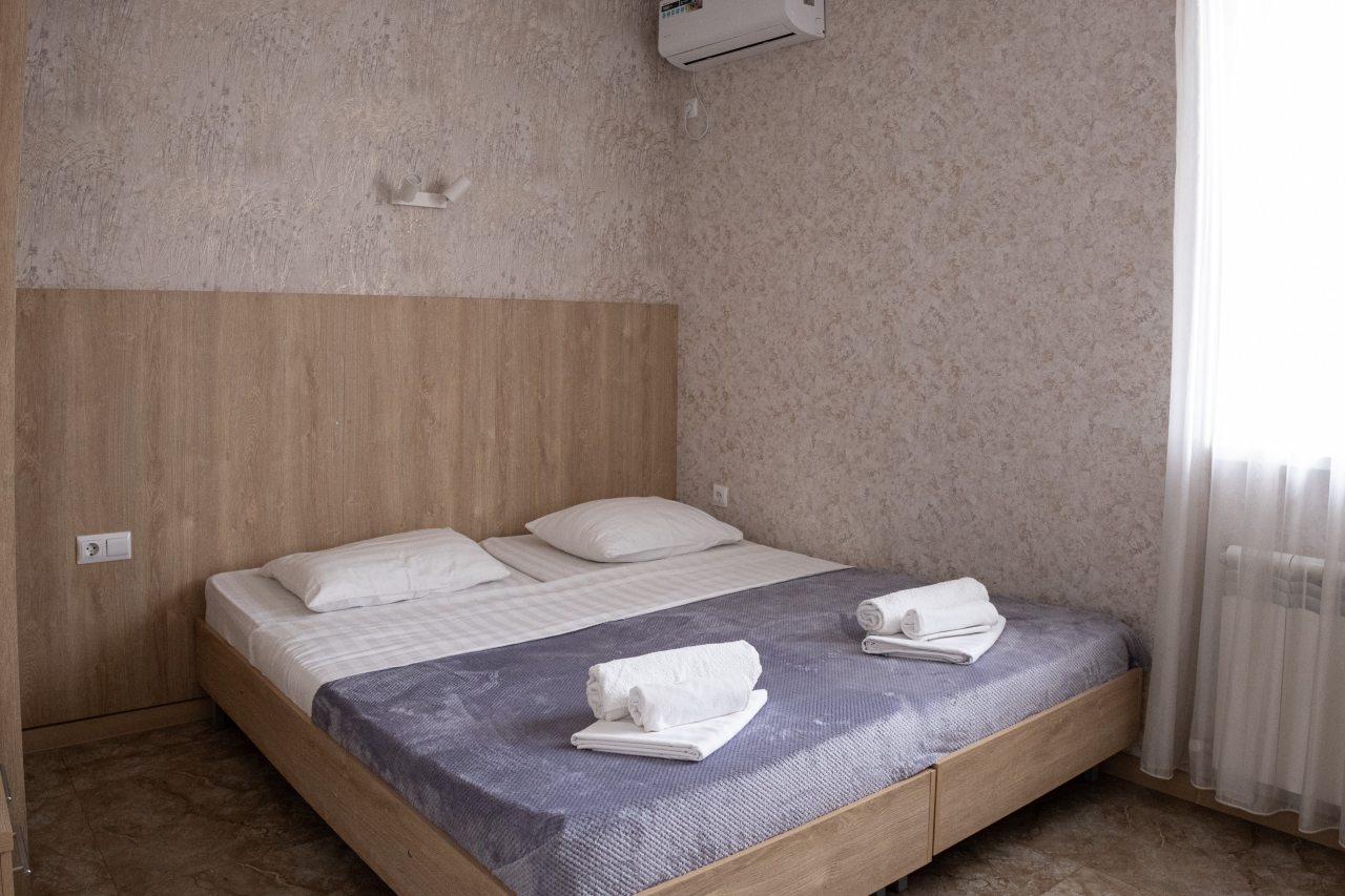 В гостевом доме представлены двухместные, трехместные и четырехместные номера разных категорий: комфорт, стандарт и эконом. В номерах новая мебель , кондиционер, телевизор, мини-холодильник и рабочая зона. Постельное белье и полотенца предоставляются. Ванная комната оснащена душем, феном, туалетными принадлежностями и средствами гигиены.