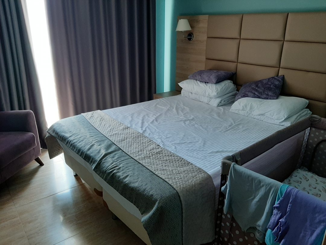 Отдыхали в отеле с 16 по 27 июня 2025 г. с детьми (14 лет, 7 лет и 5 мес.). Номер прекрасный, все необходимое в наличие. Была предоставлена детская кроватка-манеж. Хочу отметить вежливый и внимательный персонал. В номере проводилась ежедневная уборка, что с детьми очень важно)) даже посуду мыли по необходимости. Из посуды было все необходимое, вместительный холодильник, готовили на семью без проблем.