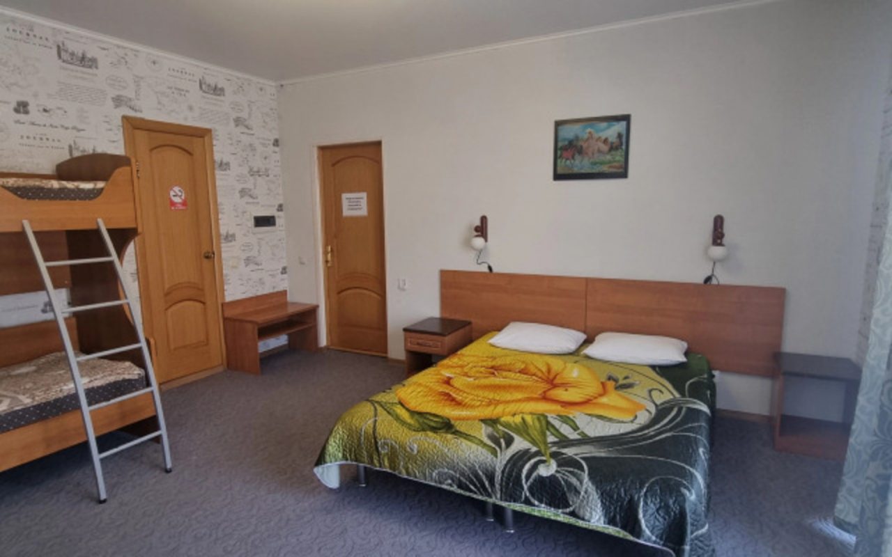 - От 0 до 1 года дети могут спать на детской кроватке (по запросу). Также предоставляется дополнительная кровать для детей от 1 года (по запросу). Цены на эти кровати зависят от сезонности: 1-30.06 - 900 руб., 1.07-25.08 - 1000руб., остальное время - 750 руб. Дети до 3-х лет могут размещаться бесплатно с родителями без предоставления отдельного спального места и питания.
