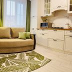 Светлая квартира оснащена удобной двуспальной кроватью, прикроватной мебелью, кондиционером, диваном, ЖК-телевизором с кабельным телевидением, высокоскоростным интернетом, гардеробом и др. Санузел оборудован сантехникой, гигиеническими средствами и стиральной машиной.
