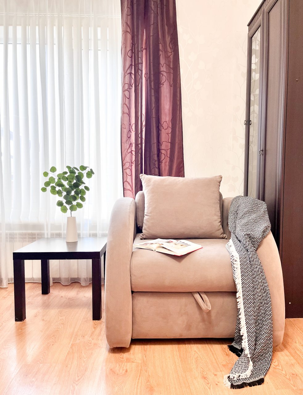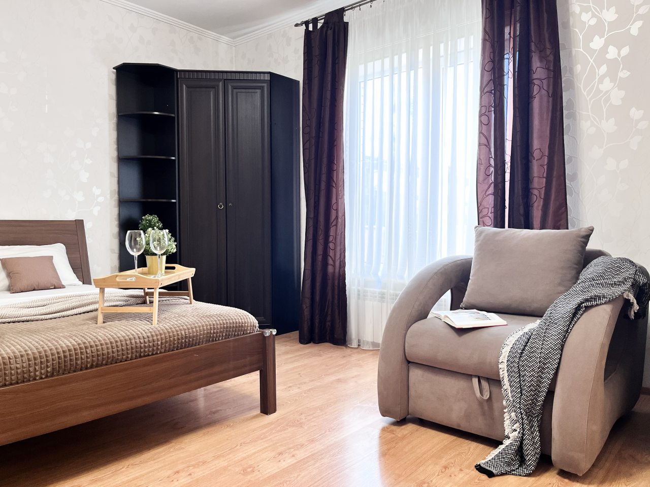 Мы были проездом в Аксае, решили не сидеть на вокзале, а снять апартаменты и выспаться. По стоимости вышло не так уж и дорого, тем более, что внутри было настолько уютно, тут действительно постарались, чтобы было комфортно проживать гостям, даже если остановиться на более долгий срок, чем мы – на ночь.